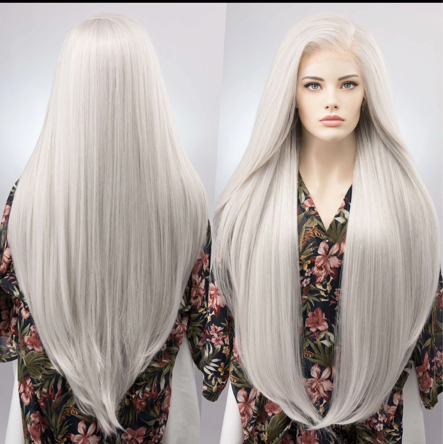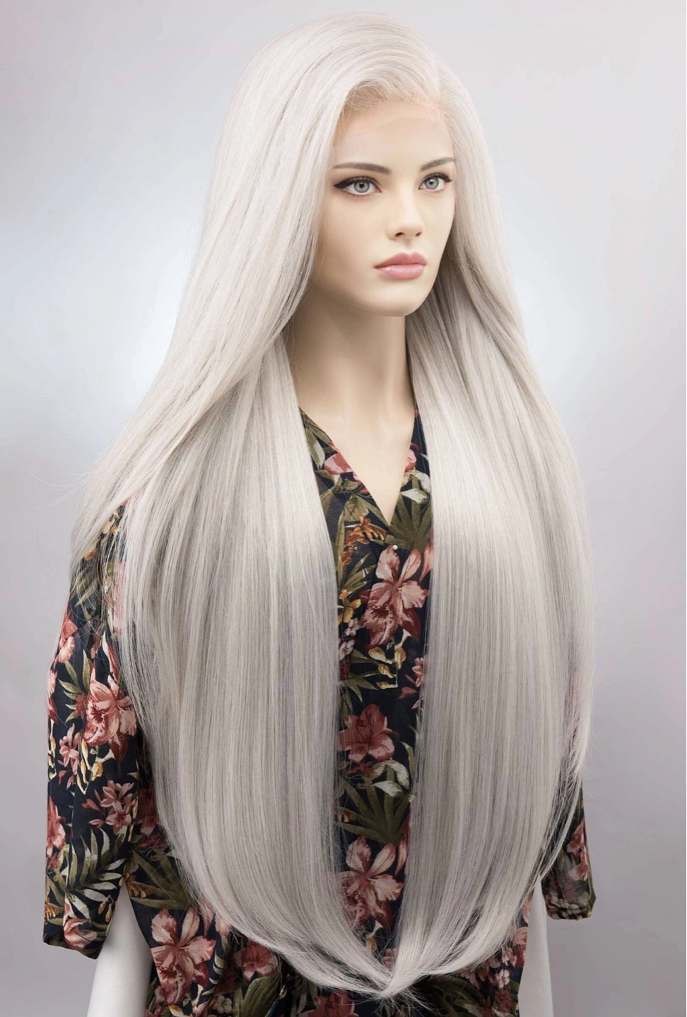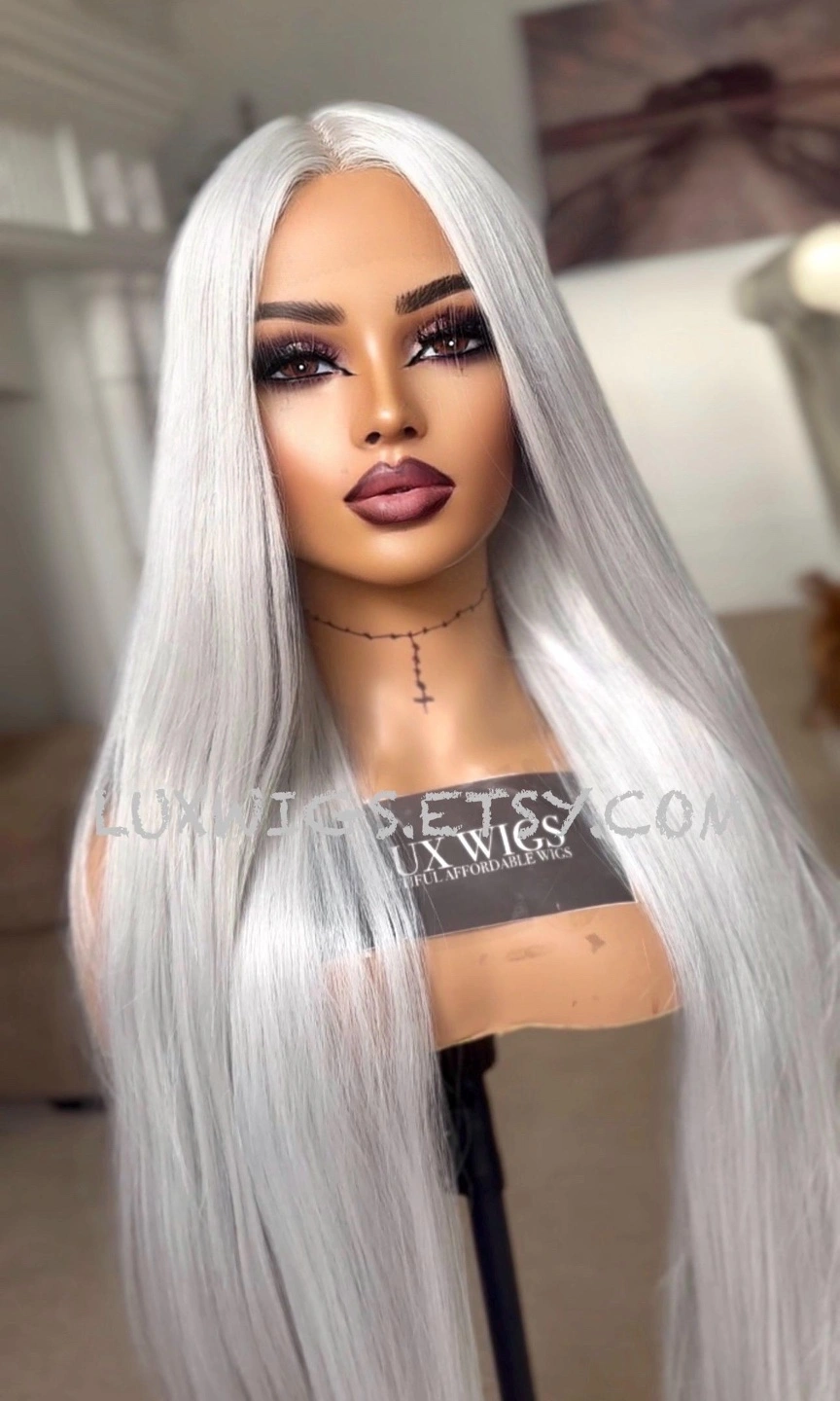 Extra long Icy Silver Lace Front Wig
