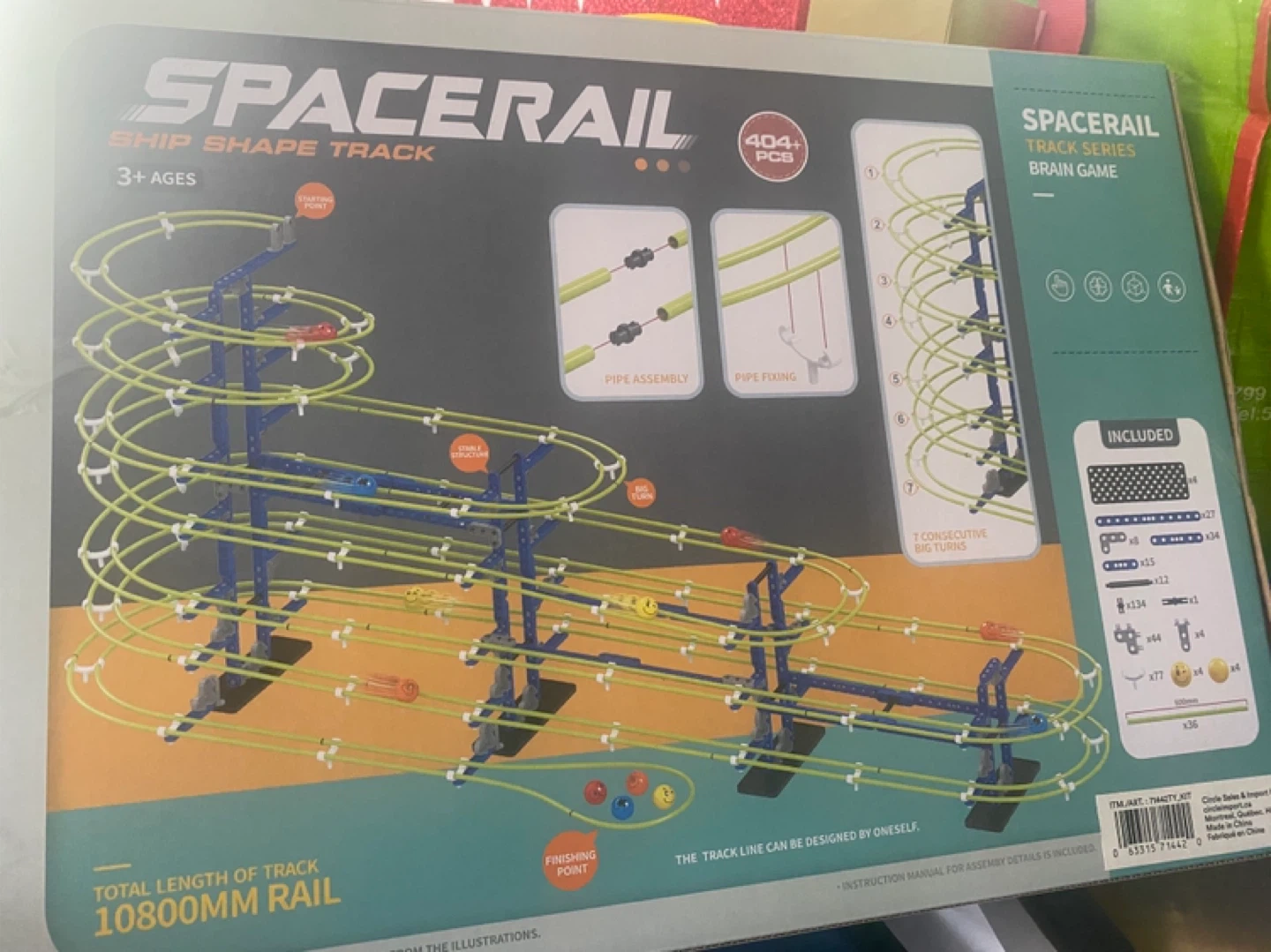 Selling a SpaceRail Ship Shape Track brain game! It's suitable for ages 3+. The box includes 404+ pieces to build your own track. The total length of the track is 10800mm. It's a fun DIY project that encourages hands-on ability, improves thinking, and fosters parent-child interaction