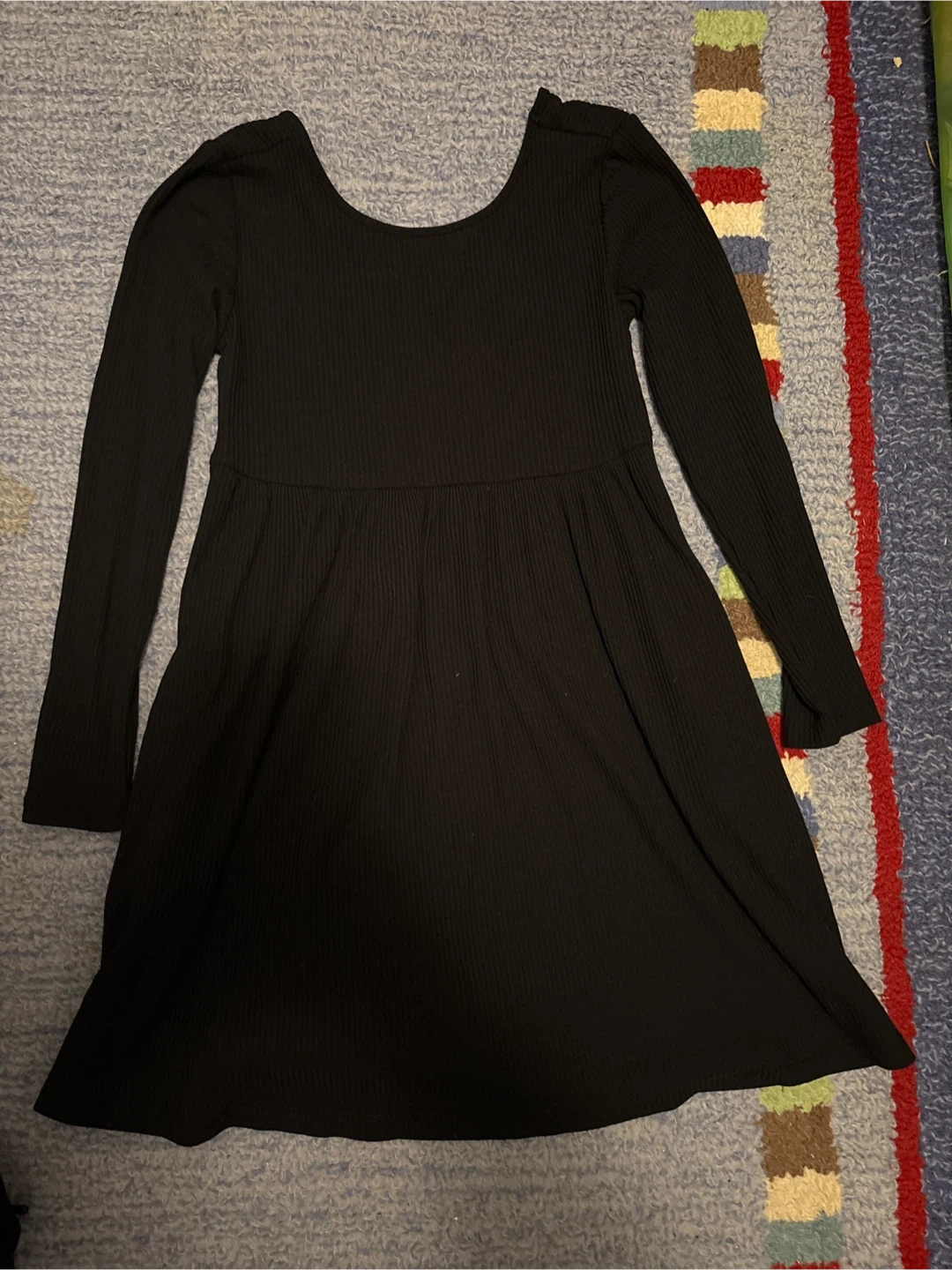 Selling a cute simple Old Navy black dress in size M(8)! It features a ribbed texture and long sleeves. Perfect for casual wear or dressing up