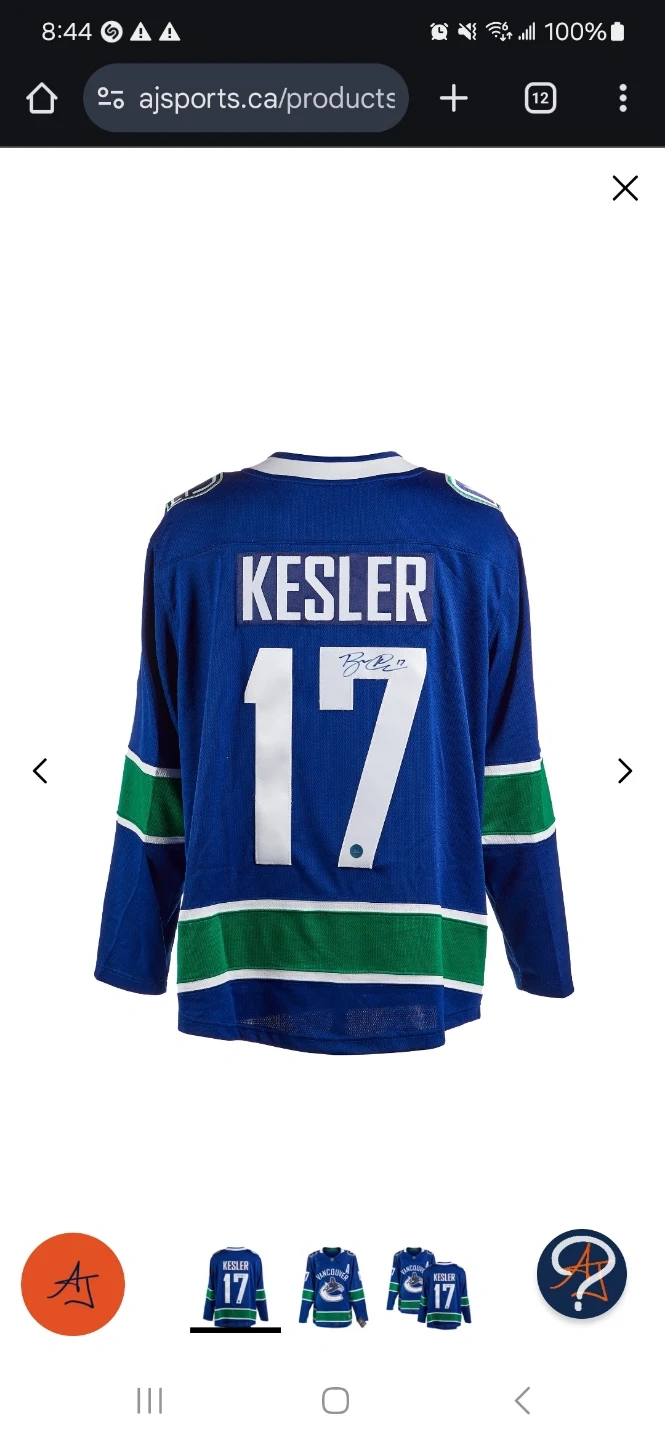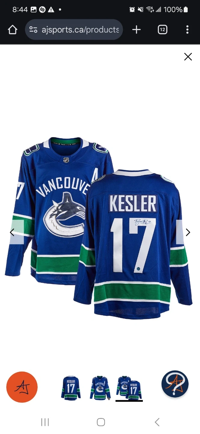 SIGNED Vancouver Canucks Ryan Kesler #17 Jersey