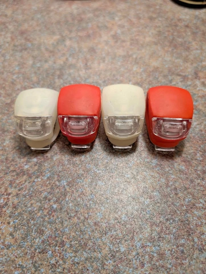 Selling 5 bike lights in total, 2 white and 3 red. Multi modal, fixed and 2 speeds of pulsing. Asking $3 each or $12 for all.
