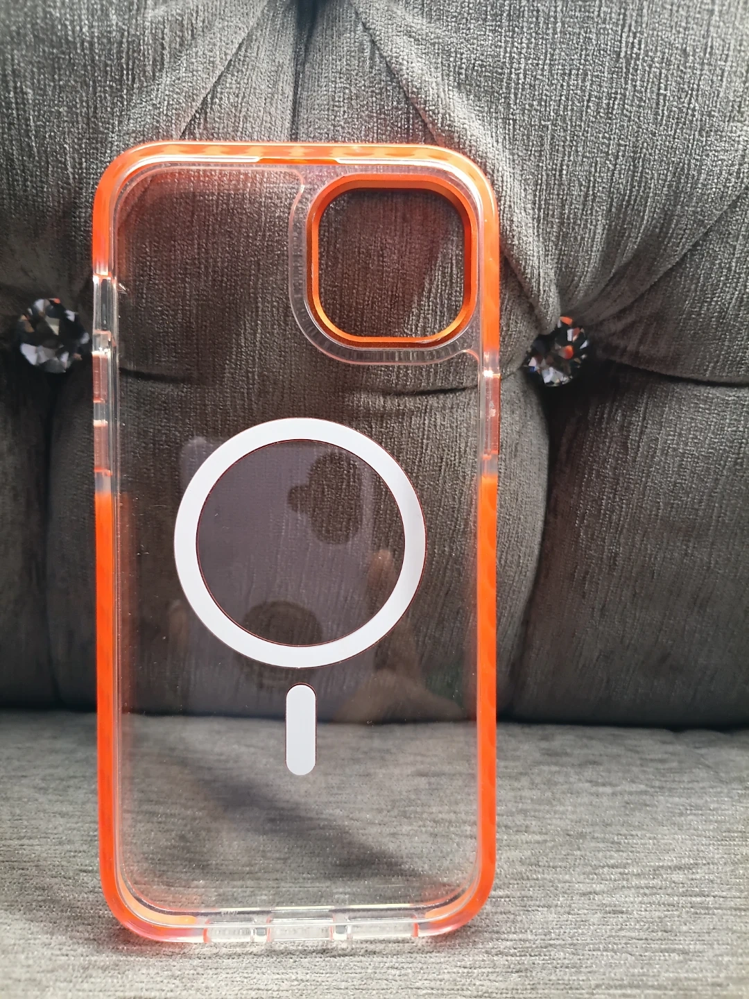 Selling an Orange Transparent iPhone 15 Pro Max Case. It's in great condition. Feel free to message me if you're interested!