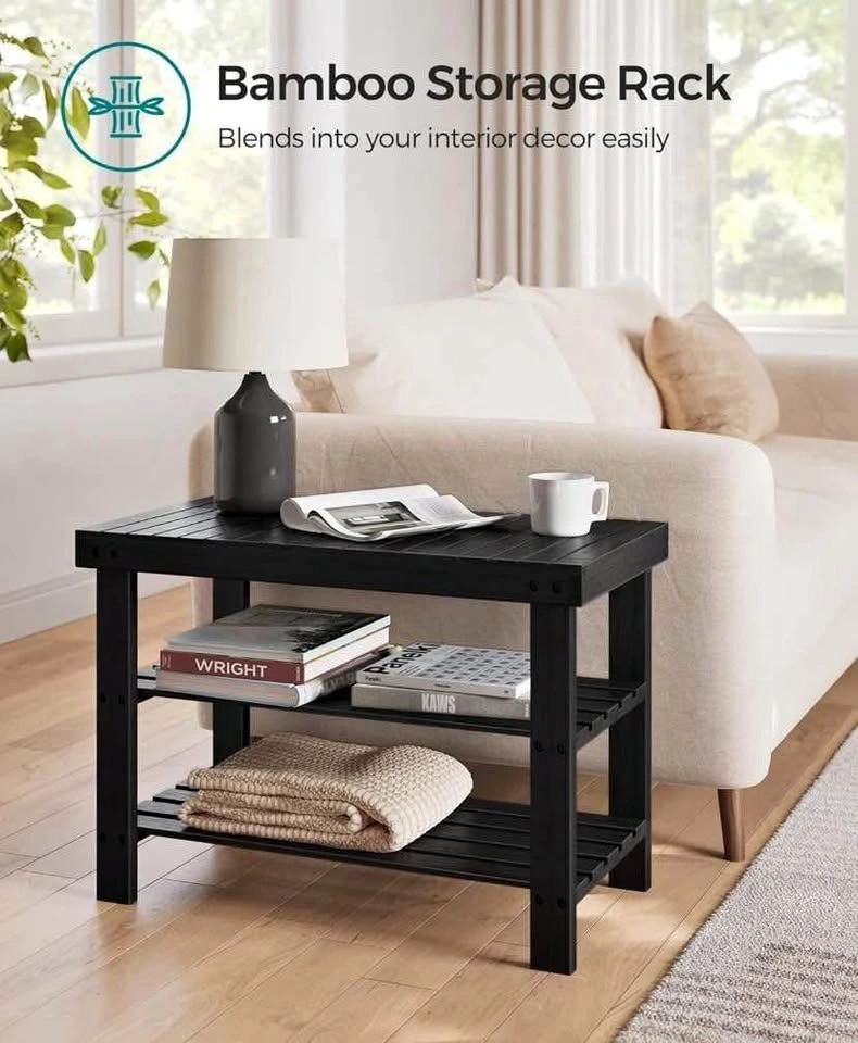 Brand New Shoe Rack Bench, 3-Tier Bamboo Shoe Storage Organizer, Entryway Bench, Holds Up to 130 kg, 28.7 x 70.1 x 45.3 cm, for Entryway Bathroom Bedroom, Black