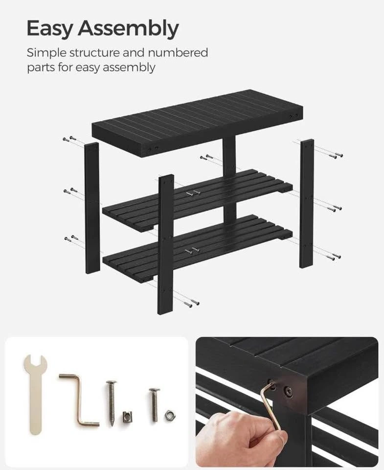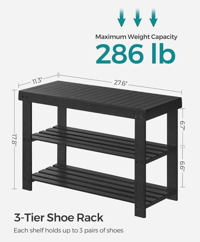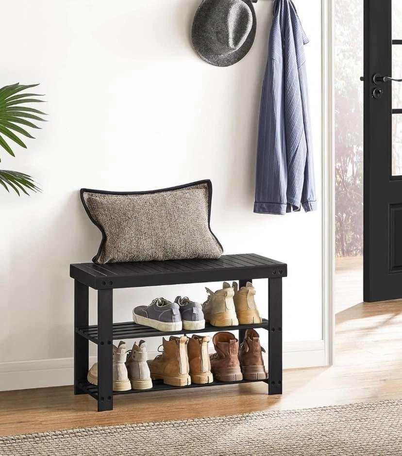 Brand New Shoe Rack Bench, 3-Tier Bamboo Shoe Storage Organizer, Entryway Bench, Holds Up to 130 kg, 28.7 x 70.1 x 45.3 cm, for Entryway Bathroom Bedroom, Black