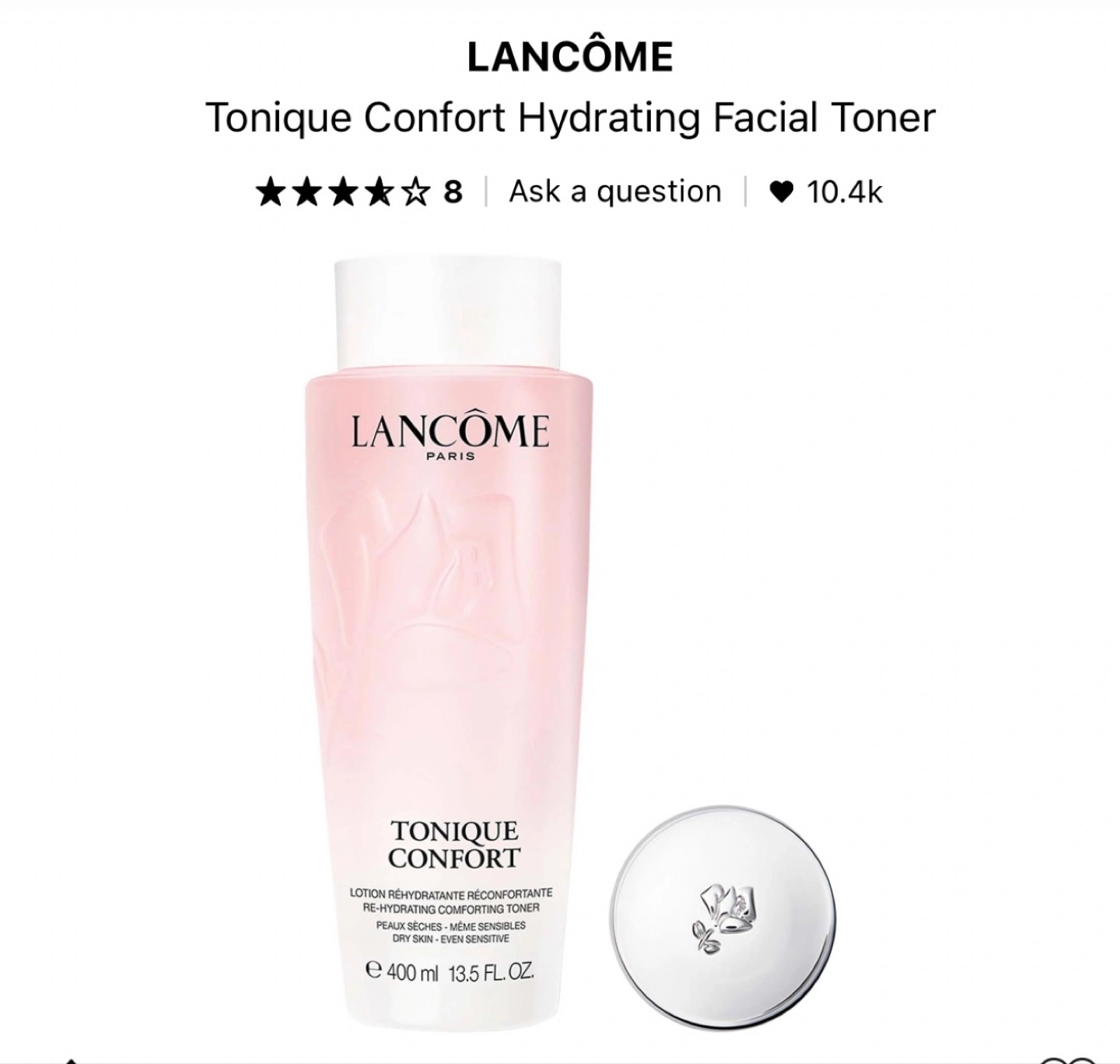 I'm selling a Lancôme Tonique Confort Hydrating Facial Toner. It's a lotion rehydratante, réconfortante for dry skin, even sensitive. The size is 400 ml / 13.5 fl oz