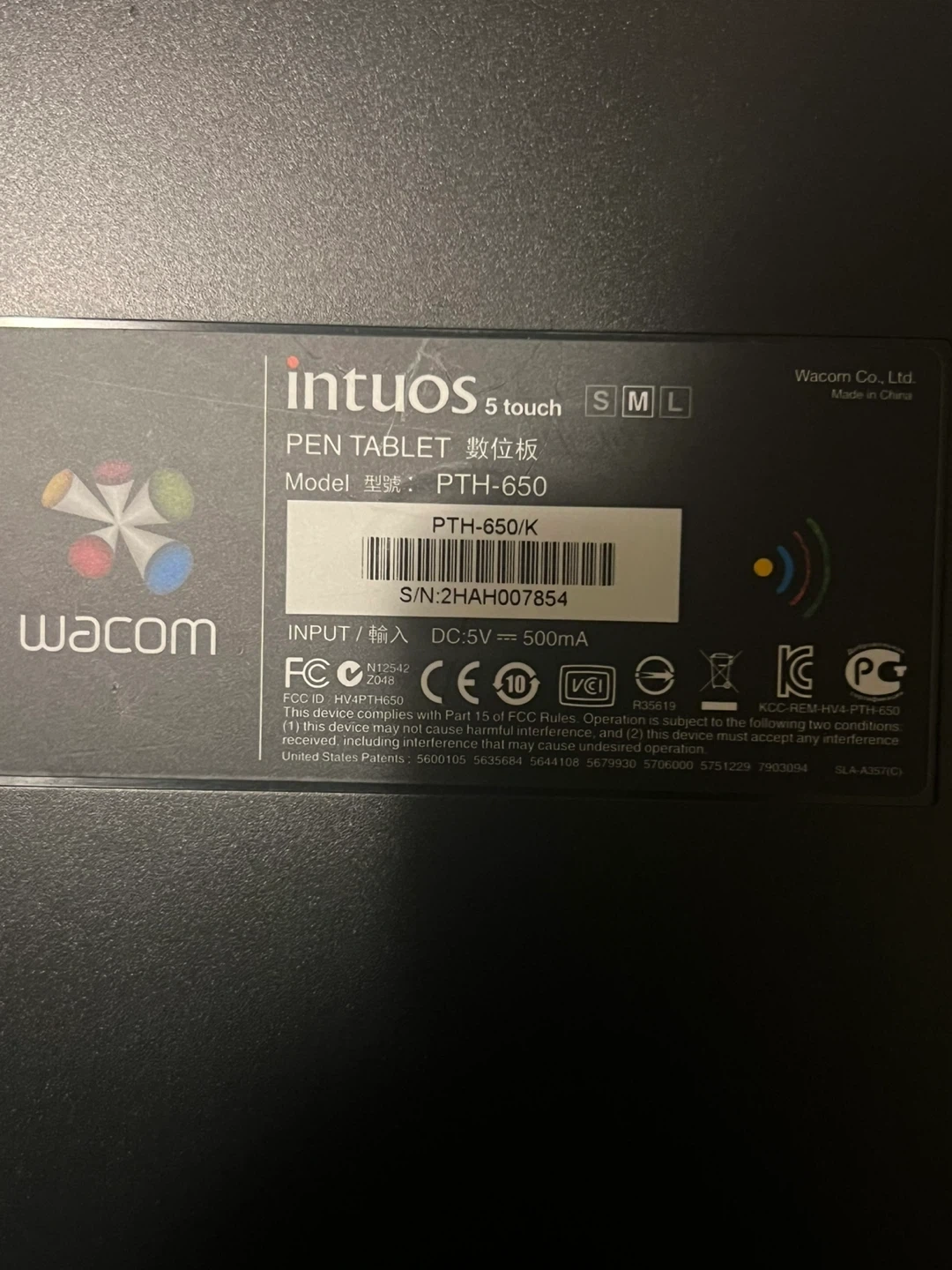 Selling a Wacom Intuos 5 Touch pen tablet in size medium. The model number is PTH-650/K. It comes with the pen and USB cable