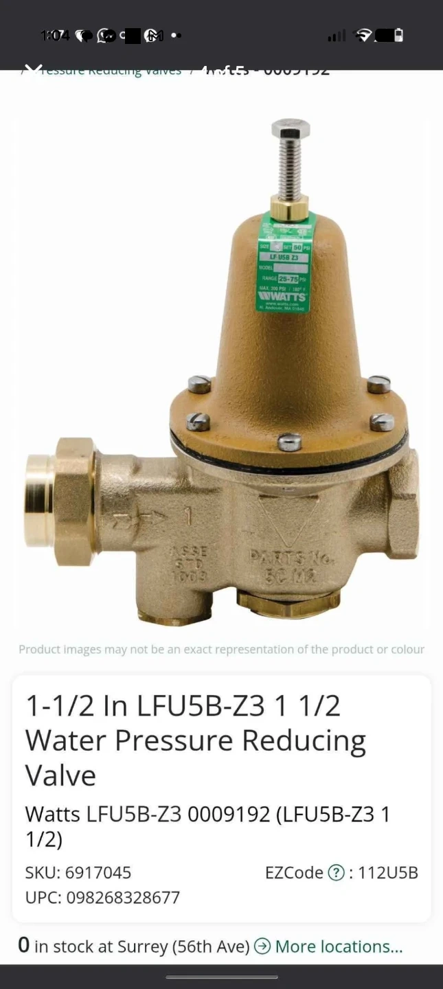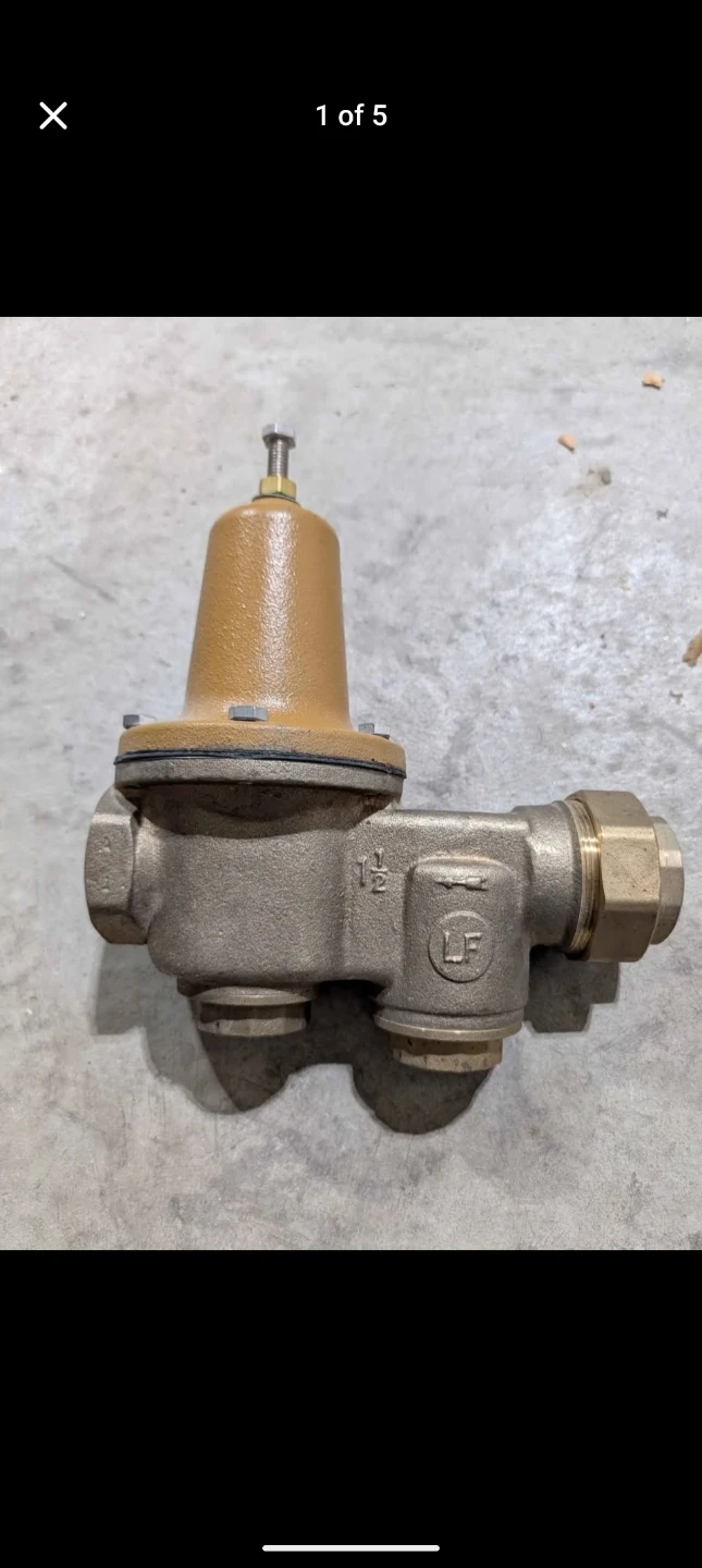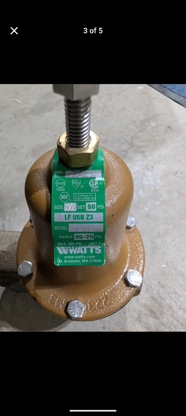 Selling a Watts water pressure reducing valve, model LFU5B-Z3, size 1-1/2 inches. It's in good condition and ready for use!