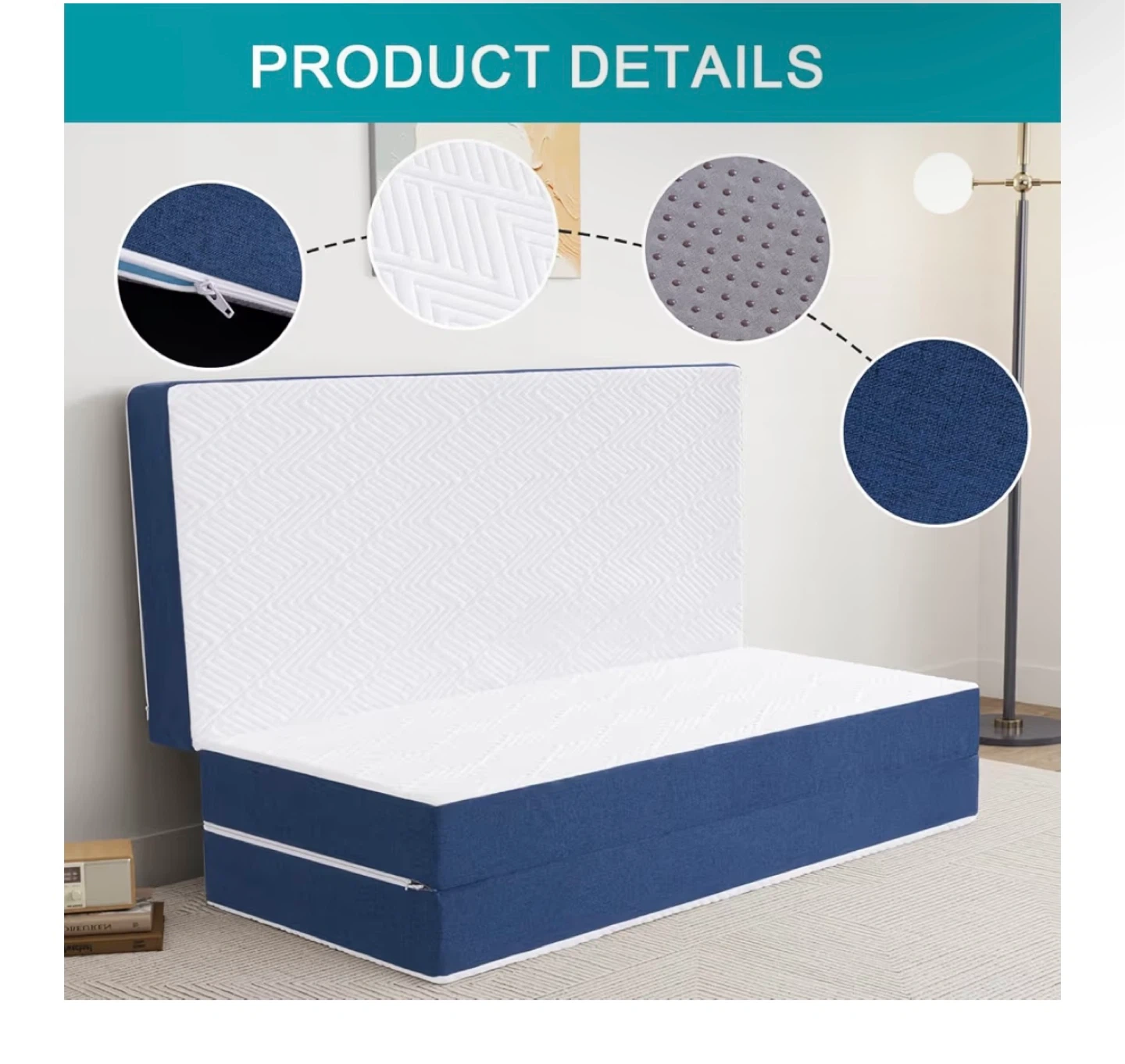 Folding Mattress, 6 Inch Tri Fold Memory Foam Mattress Topper with Washable Fabric Cover, Non Slip Bottom, Pressure Relief, Twin, Blue, Medium Firmness .