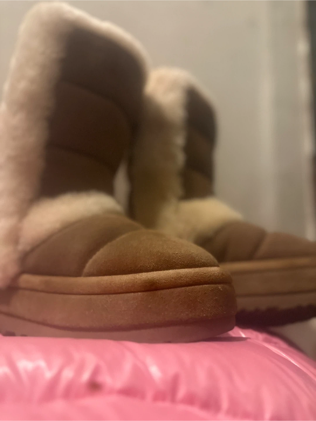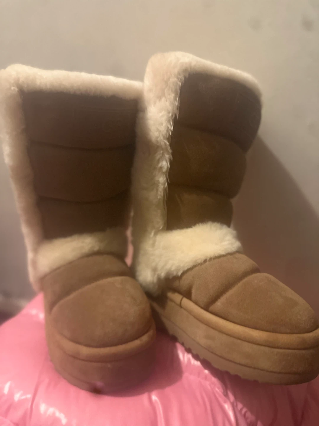Cozy UGG boots in a lovely brown suede material. They're super comfy and perfect for keeping your feet warm. They have some signs of wear, but still have lots of life left!