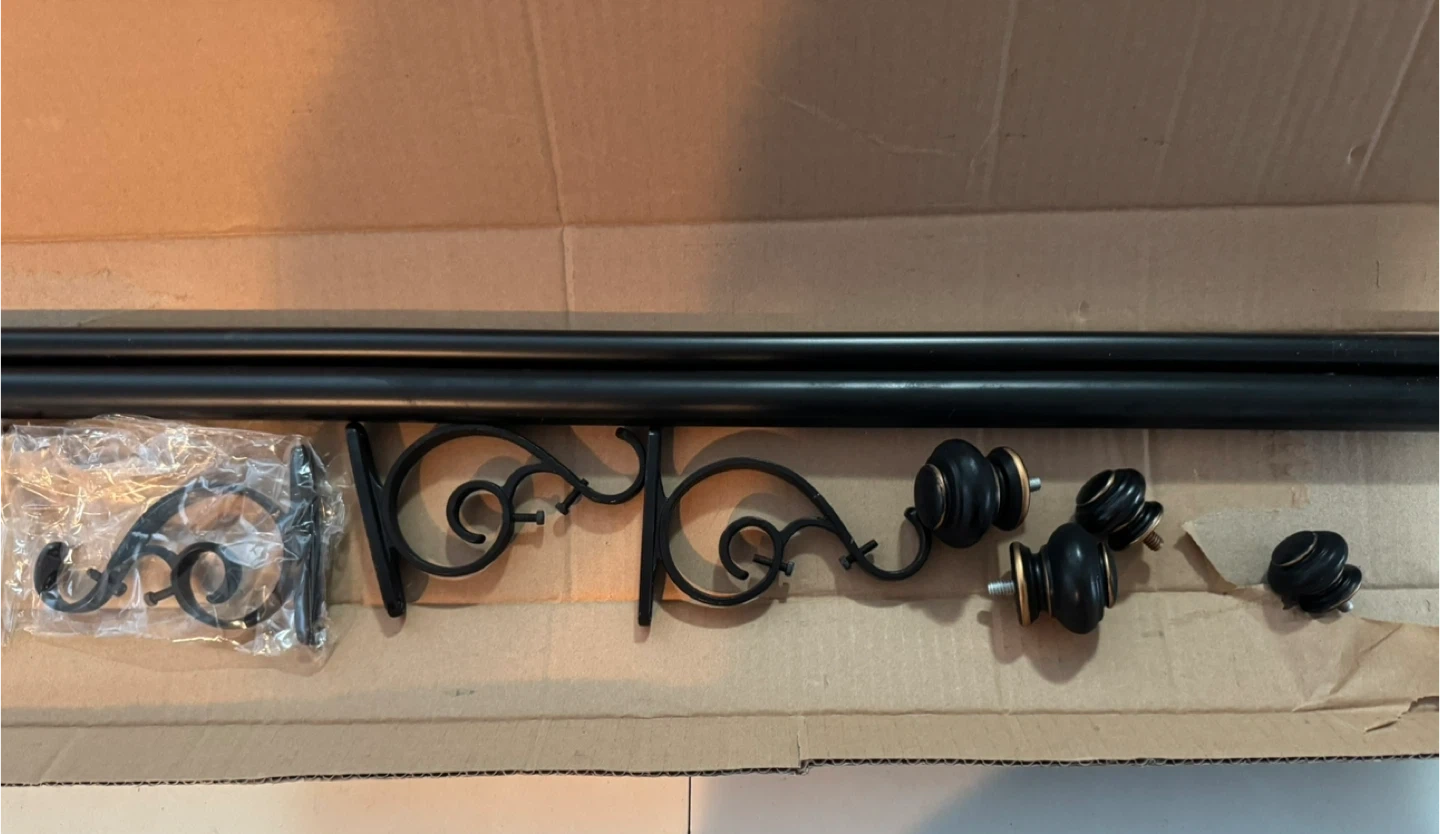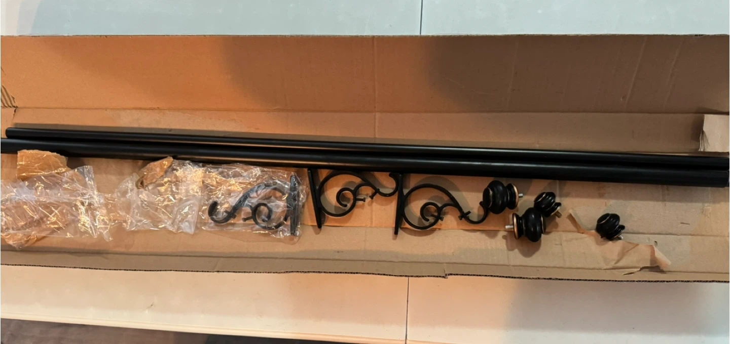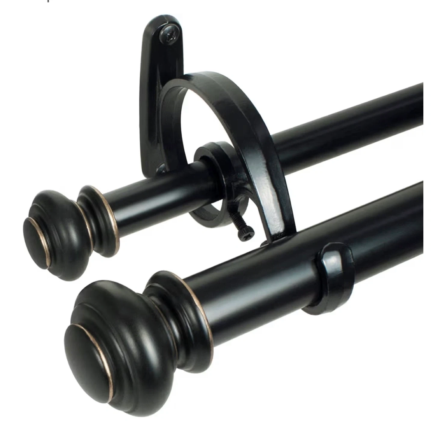 Selling a double curtain rod in black. It comes with all the necessary hardware and brackets for easy installation. Perfect for adding a touch of elegance to any room!