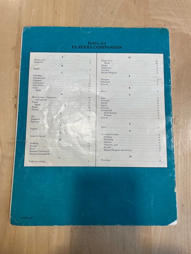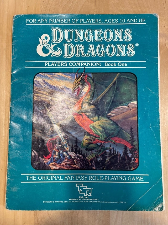 Original Dungeons & Dragons Players Companion: Book One, published by TSR. A classic early-era rulebook featuring character classes, spells, weapons, tables, and iconic black-and-white illustrations throughout. Photos show the actual book, including cover, index, rules text, character art, and tables. A great piece for collectors, old-school players, or display alongside other TSR-era D&D books.