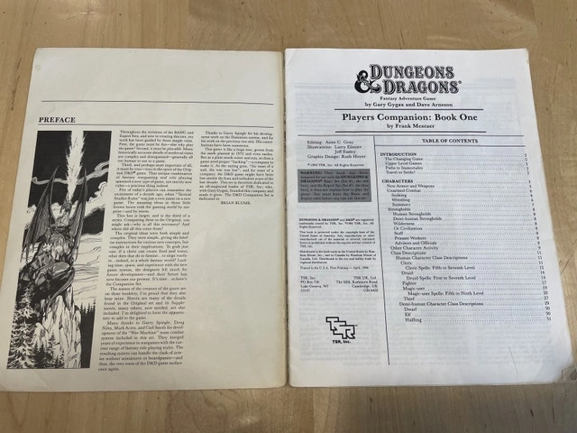 Original Dungeons & Dragons Players Companion: Book One, published by TSR. A classic early-era rulebook featuring character classes, spells, weapons, tables, and iconic black-and-white illustrations throughout. Photos show the actual book, including cover, index, rules text, character art, and tables. A great piece for collectors, old-school players, or display alongside other TSR-era D&D books.
