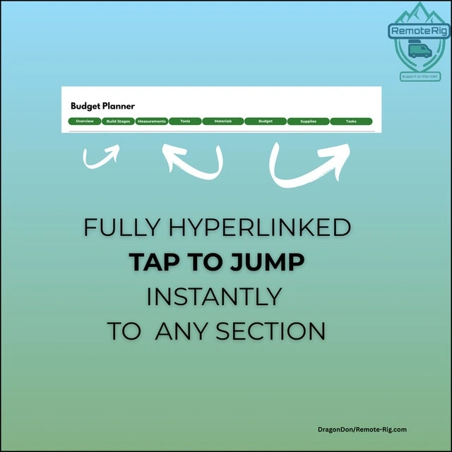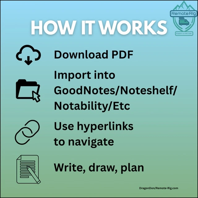 A complete digital planner designed to help you organize and map out your vehicle build. Perfect for vanlife, RV conversions, SUV camping setups, and DIY overlanding projects. Hyperlinked, tablet-friendly, and simple to use. Details: • Format: Hyperlinked PDF • Pages: 10 (Build Overview, Measurements, Tools, Materials, Budget & more) • Compatibility: GoodNotes, Notability, Tablets & Desktop PDF viewers • Layout: Clean, structured templates • Usage: Digital or printable • Extras: Layout sketch zones + build checklist Ideal for anyone planning a vehicle conversion, customizing an SUV, building out a micro-camper, or starting a vanlife project. Perfect For Vanlife • Micro-Campers • SUV Sleepers • Overlanding Rigs • DIY RV Builds For Sale By: Owner
