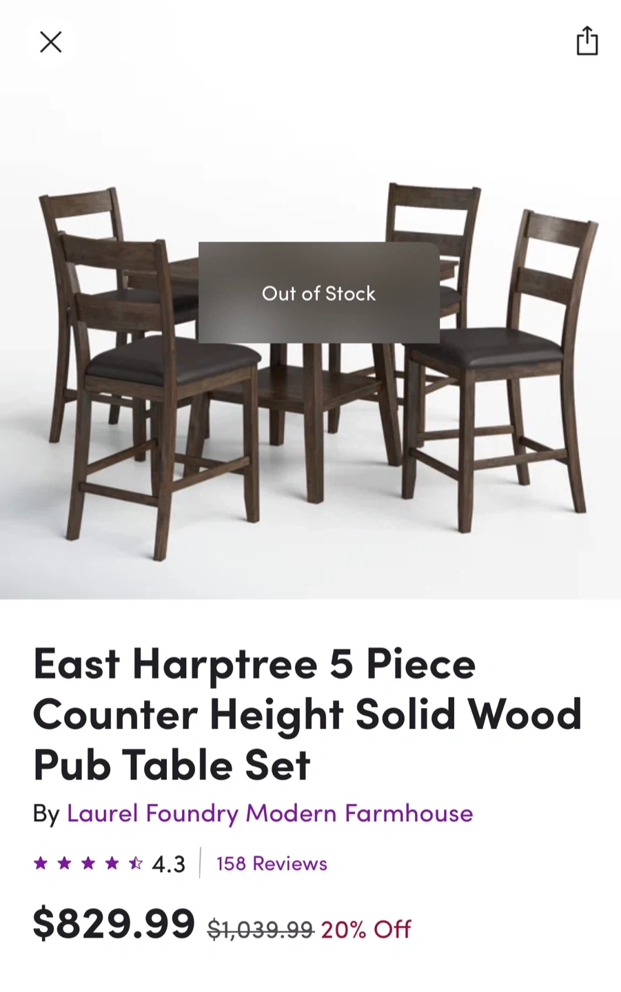 Selling a counter height dining table that comes with four matching chairs. It's a great set for a smaller dining space or kitchen nook. The table also has a convenient shelf underneath for storage or display. The set is in good condition and ready for a new home!