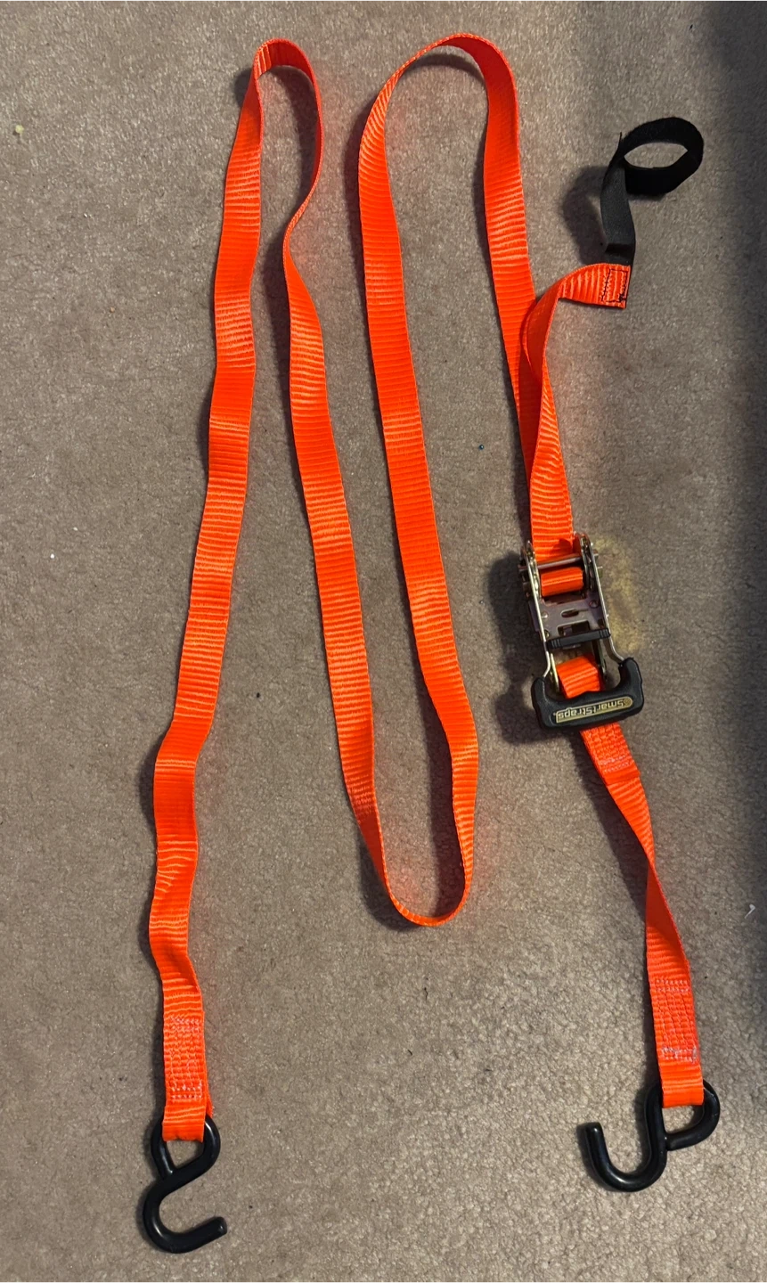 Selling One Stop Tie Down ratchet straps in bright orange! These are super handy for securing cargo, whether you're moving furniture or hauling equipment. Brand new condition ... 10 feet long, 1 inch width. Four available
