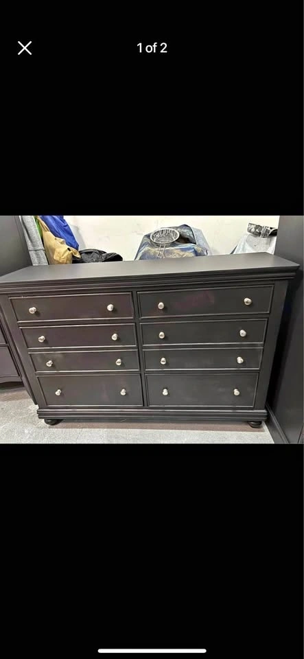 Beautiful black dresser in great condition with plenty of storage. Features 8 smooth-gliding drawers with silver knobs and a classic, clean design that fits well in bedrooms, guest rooms, or apartments.