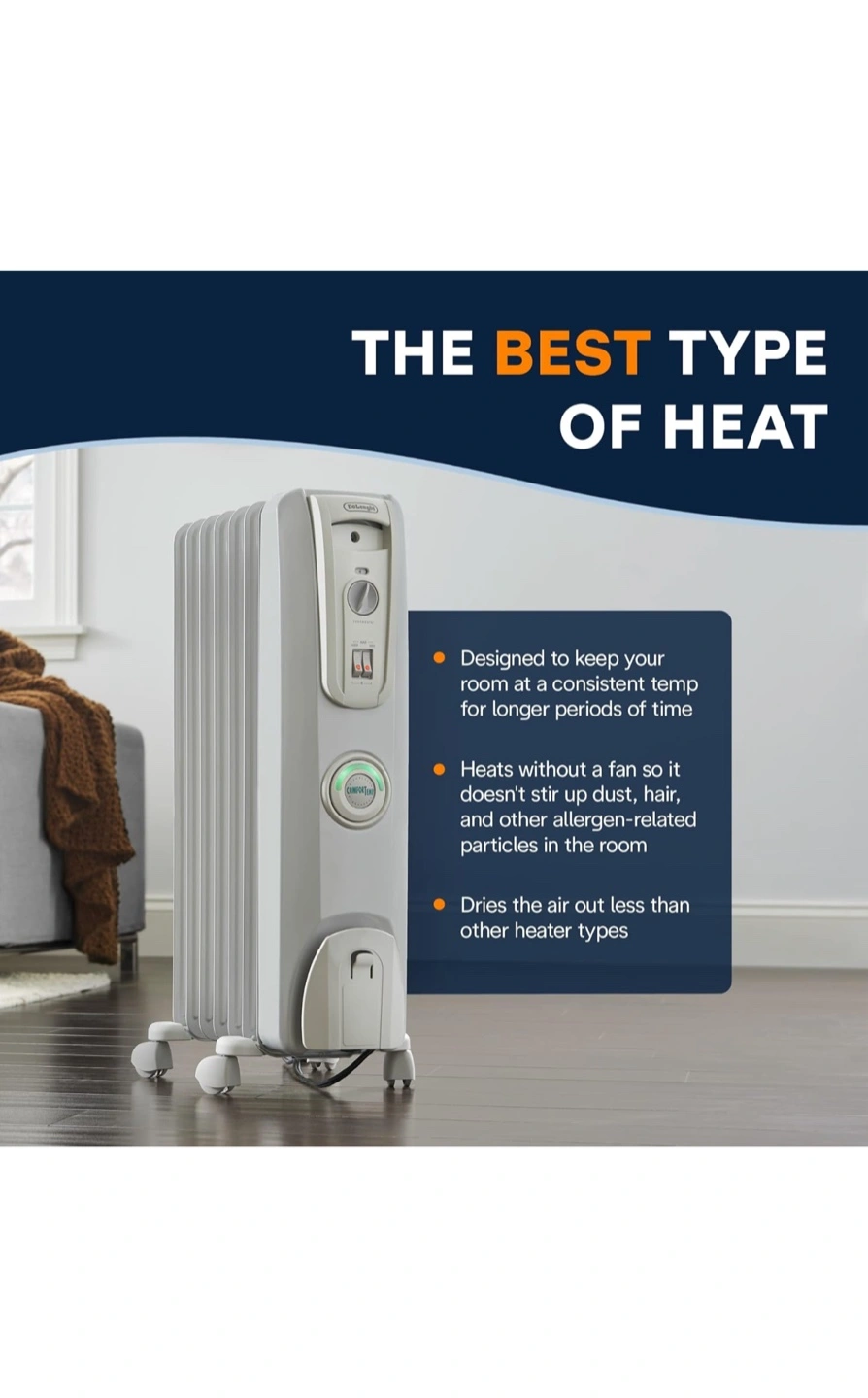Get ready for the cold season with this brand new DeLonghi 1500W Portable Oil-Filled Radiator Heater, designed to keep your home warm, cozy, and energy-efficient! Perfect for bedrooms, offices, or living spaces, this heater provides steady, silent, and long-lasting heat.