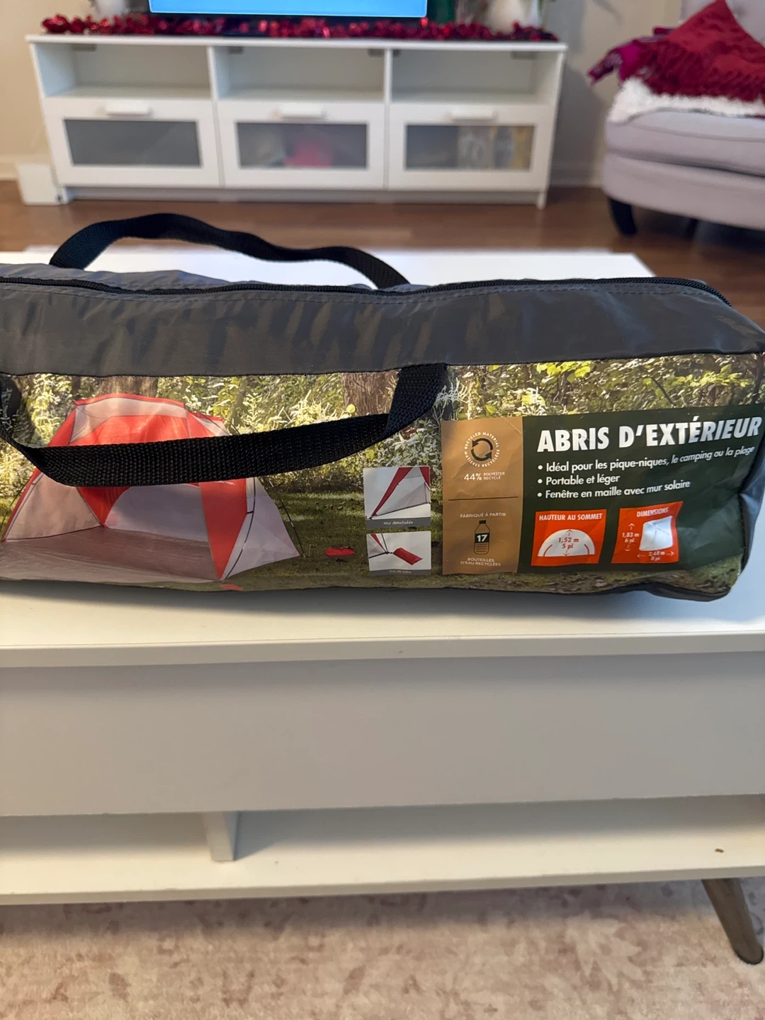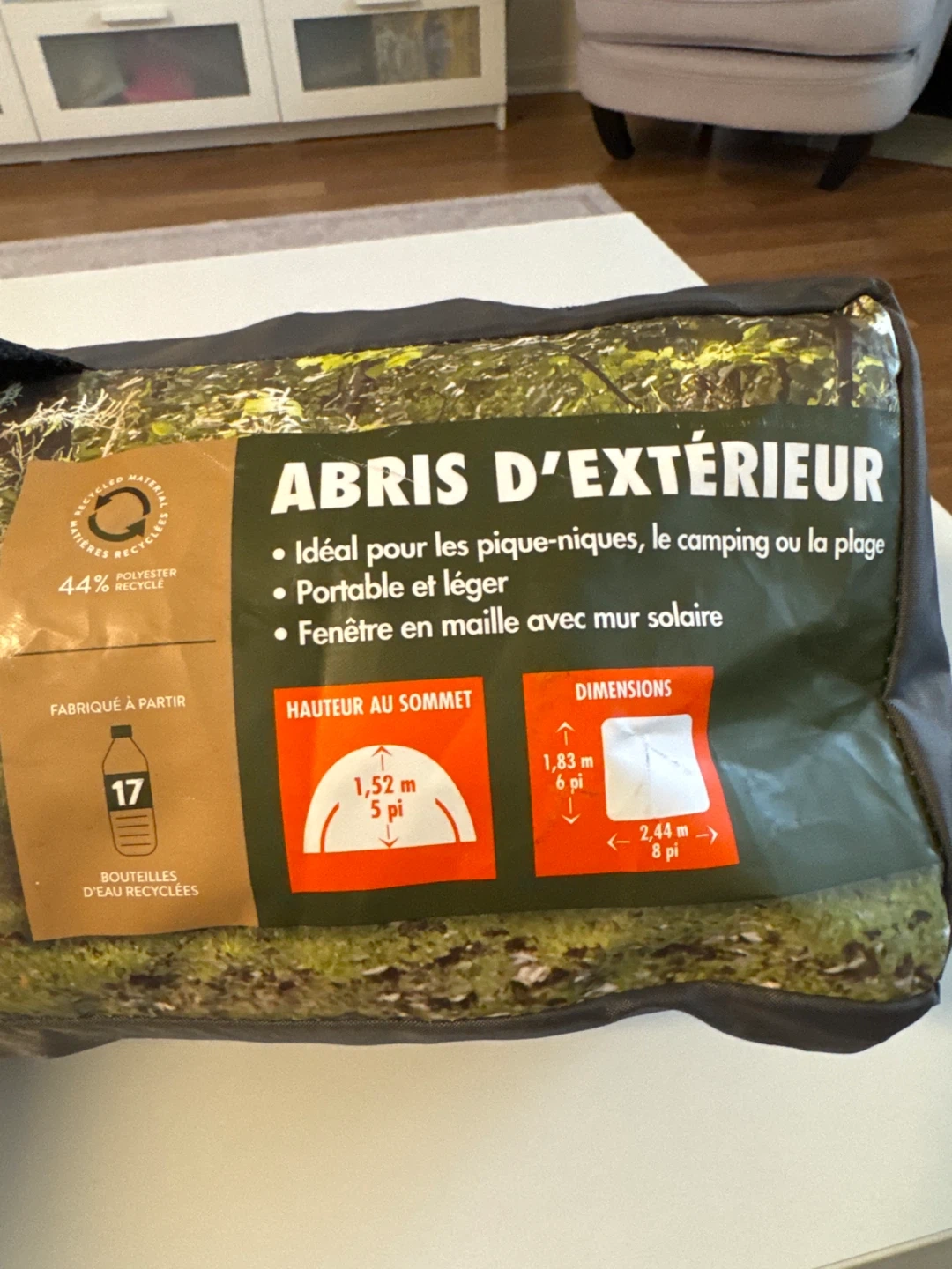 Selling an outdoor shelter, perfect for picnics, camping or the beach! It's portable and lightweight, featuring a mesh window with solar wall. The height at the top is 1.52m / 5ft and the dimensions are 1.83m / 6ft x 2.44m / 8ft