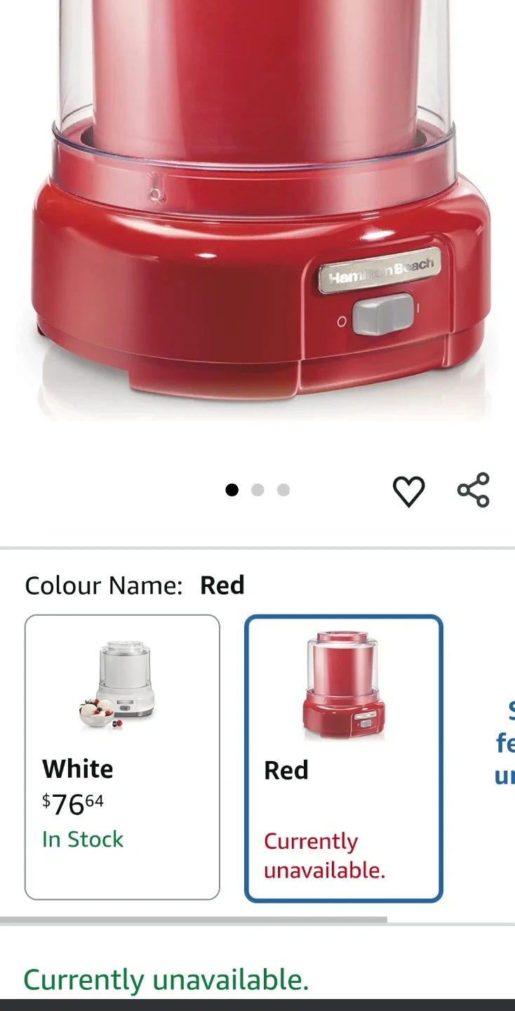 Selling a Hamilton Beach 1.5 Quart Ice Cream Maker in red. Retail price on Amazon $76. Red is currently popular since it's out of stock!