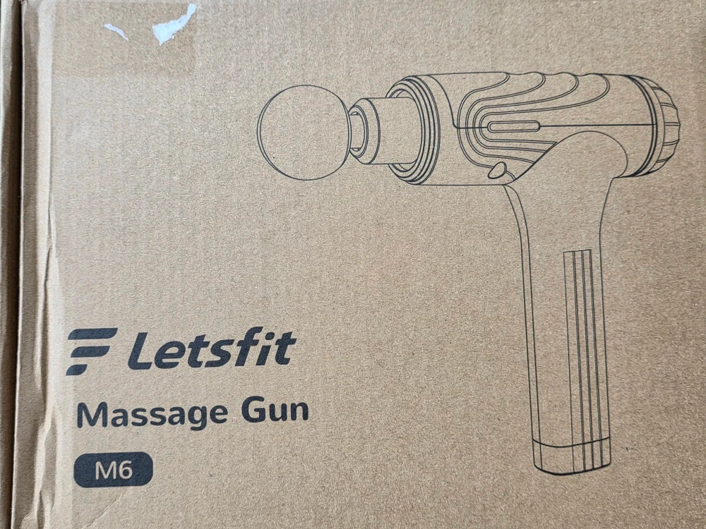 I'm selling a Letsfit M6 massage gun. It comes with the box and various components, including different massage heads and a charger. It's in great condition and ready to help you relax those muscles!