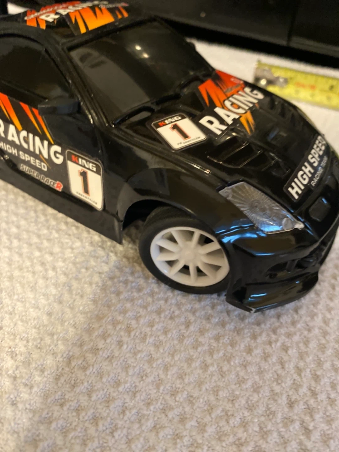 A VERY FAST RC RACING CAR, SEE ALL 10 PICS., REAR DRIVE AND AS PICS SHOW….FORWARD REVERSE FRONT WHEELS STEER LEFT & RIGHT.