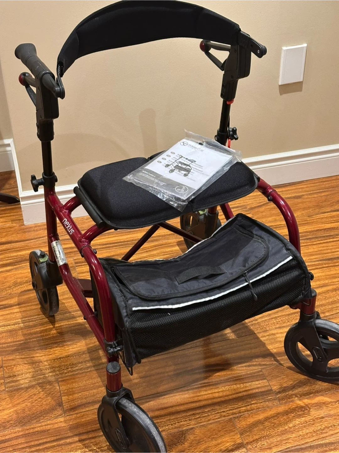 Rollator Walkers with Seat for Seniors, 8'' Big Wheels, 350 lb. Weight Capacity, Adjustable Handles and Seat Height, Lightweight Rolling Walker, Red