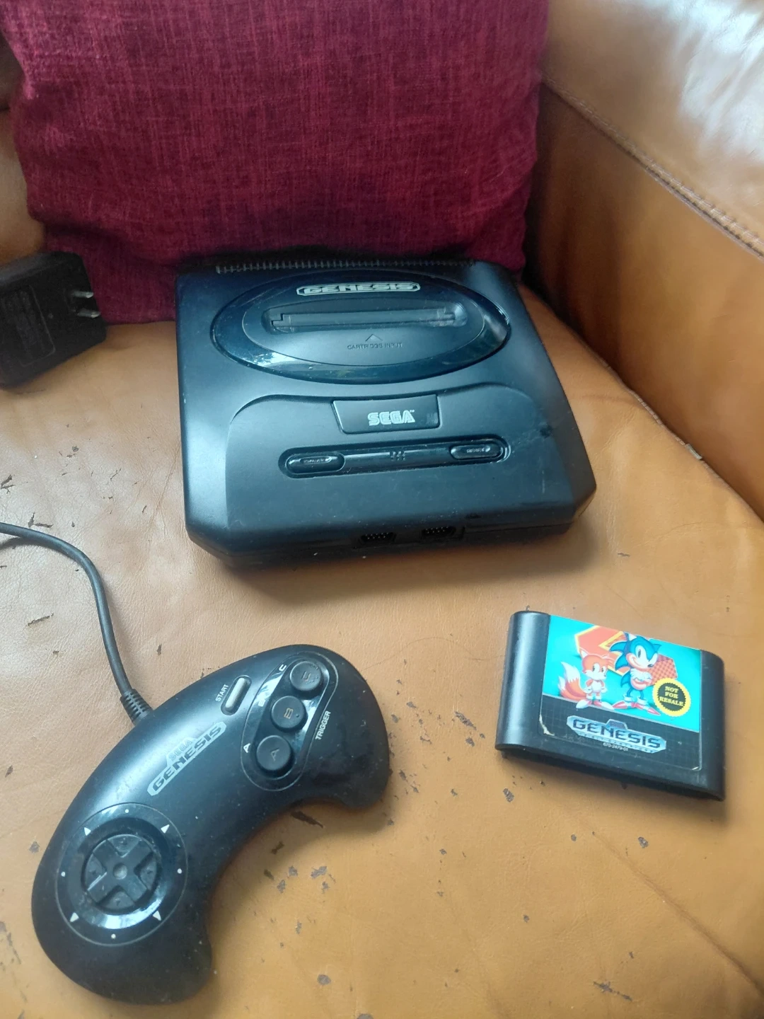 Selling a Sega Genesis console with a Sonic the Hedgehog game cartridge! It comes with the power adapter and controller so you can get right into playing. There are some scratches on the console, but it is still fully functional.