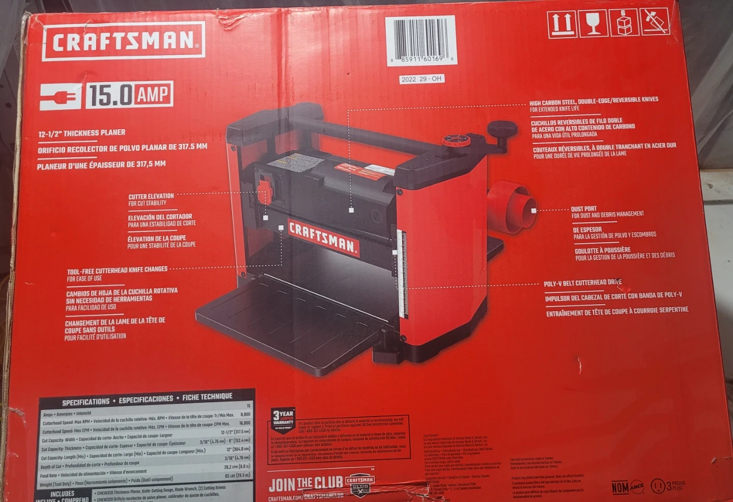 Looking to sell my Craftsman 15.0 Amp 12-1/2" Thickness Planer. It's in great shape and ready for your woodworking projects! It features a cutter elevation for cut stability and a tool-free cutterhead knife changes for ease of use. The box includes a poly-v belt cutterhead drive and a dust port for dust debris management
