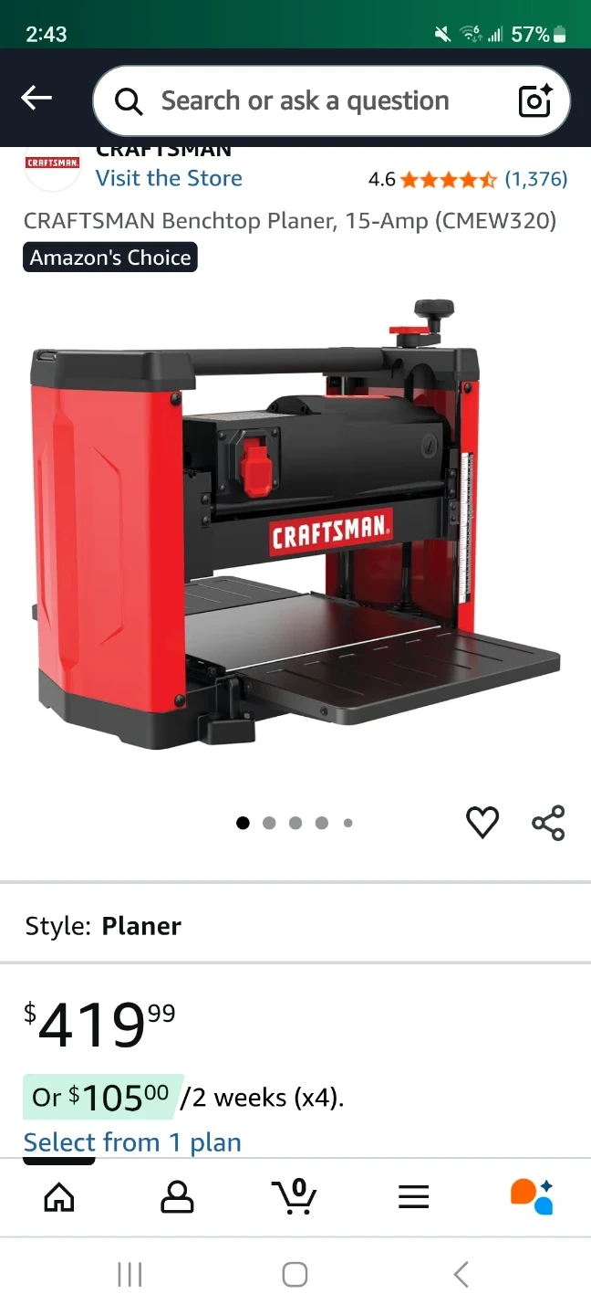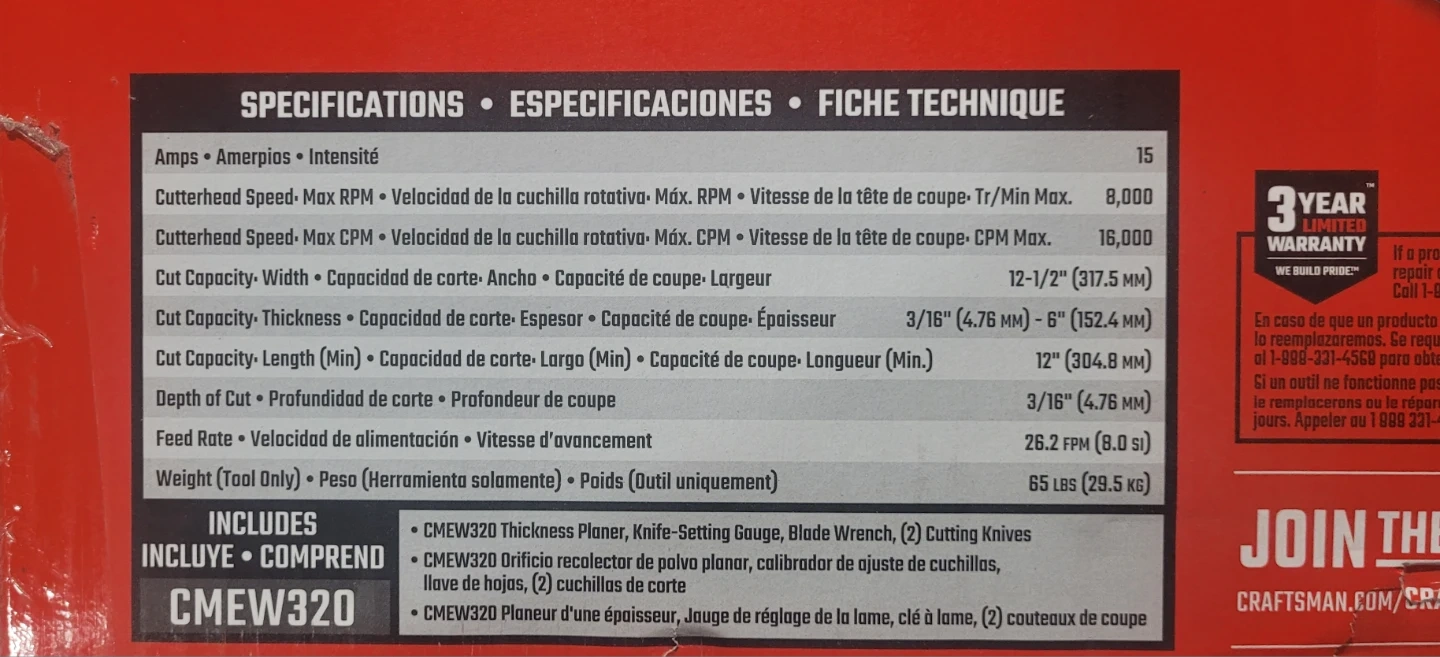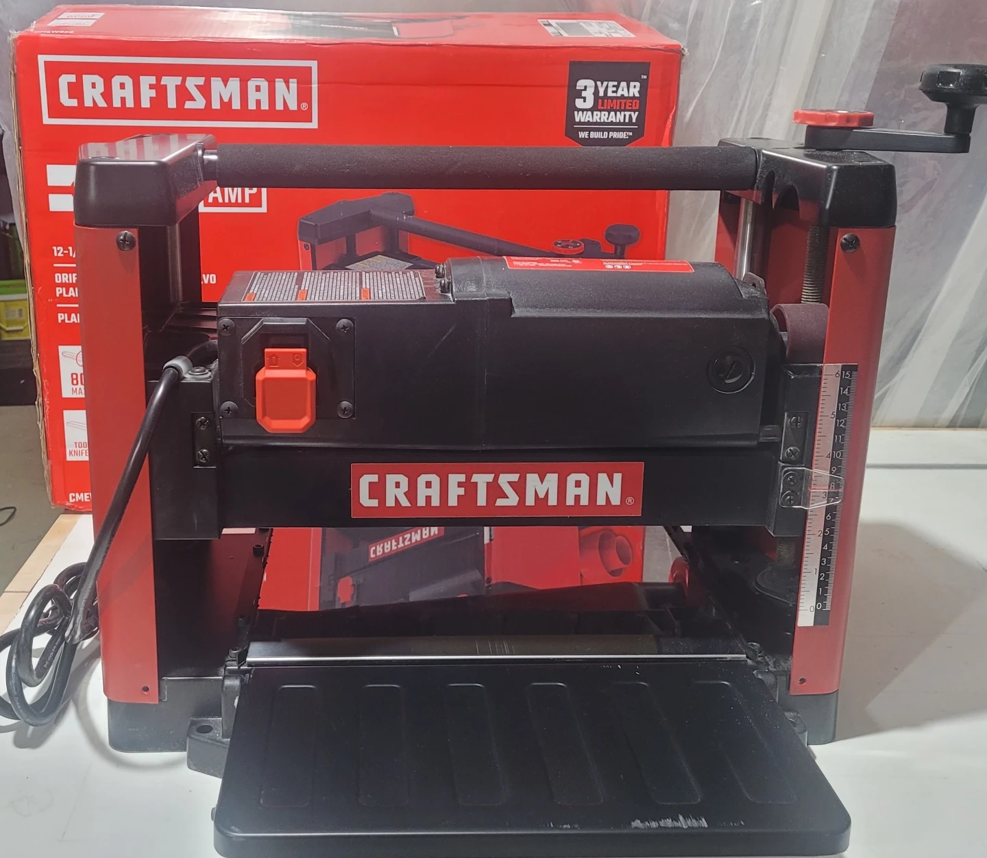 Looking to sell my Craftsman 15.0 Amp 12-1/2" Thickness Planer. It's in great shape and ready for your woodworking projects! It features a cutter elevation for cut stability and a tool-free cutterhead knife changes for ease of use. The box includes a poly-v belt cutterhead drive and a dust port for dust debris management