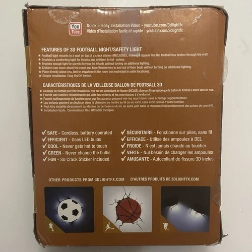 3D LightFX Deco Football Wall Night Light Safety Light