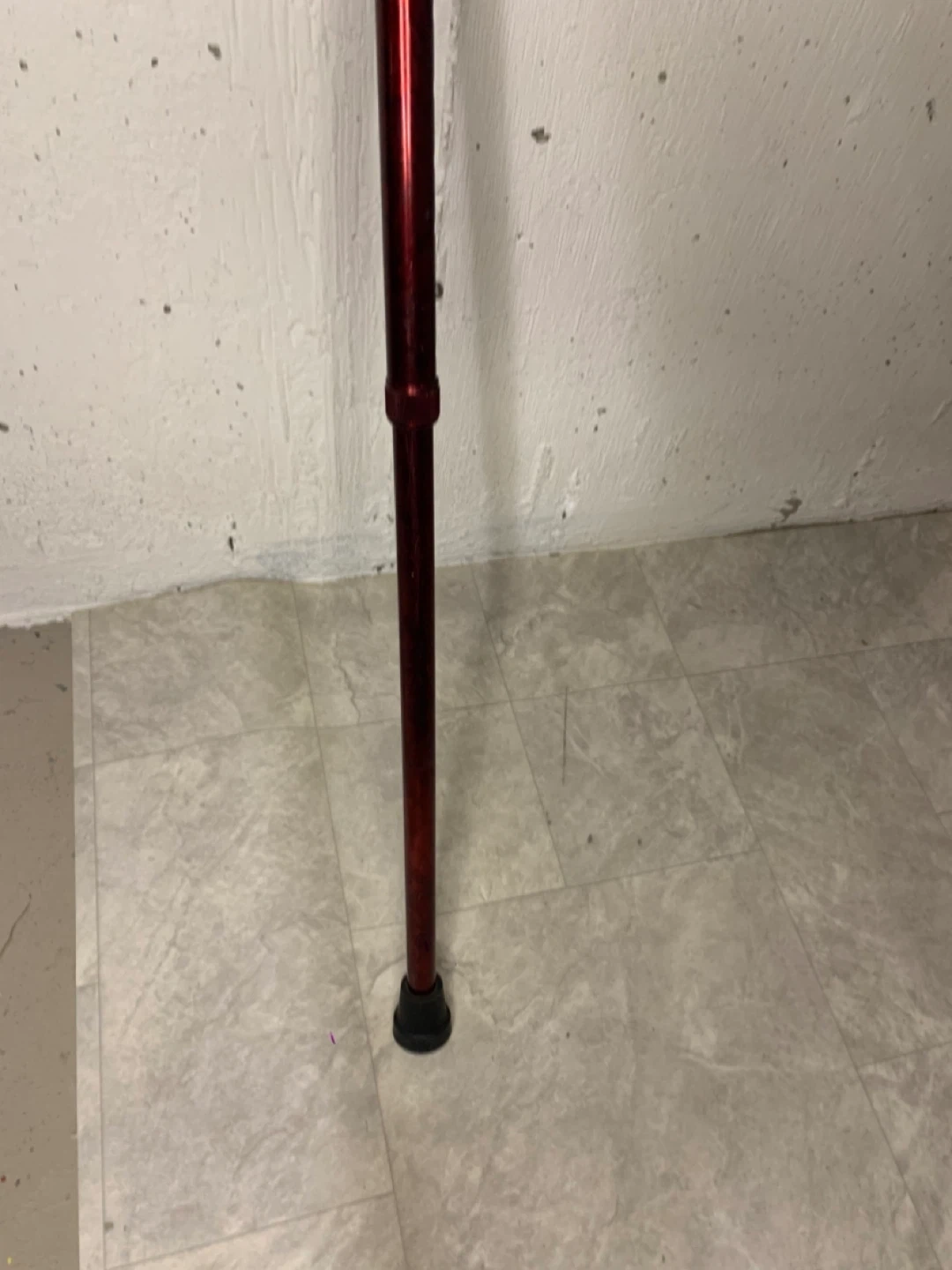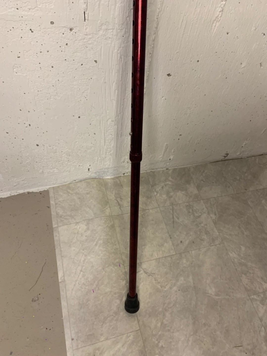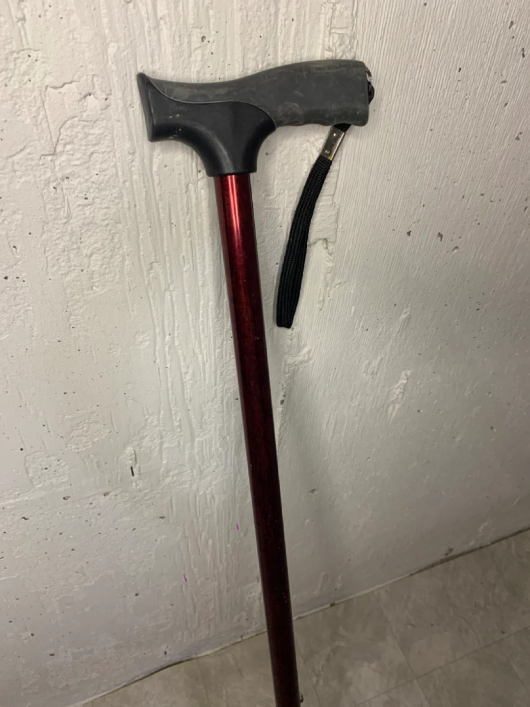 Selling a Carex walking cane in burgundy. It has a comfortable grip and a convenient wrist strap. It is adjustable in height to suit your needs. Great for anyone needing a bit of extra support!