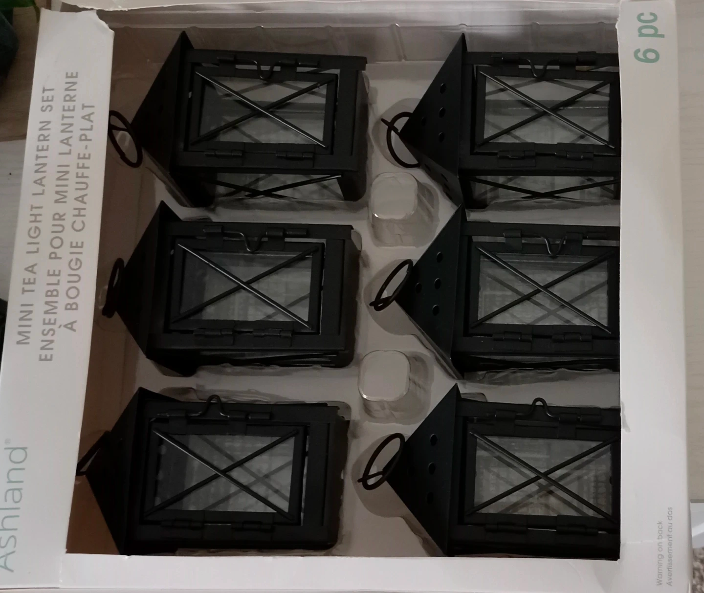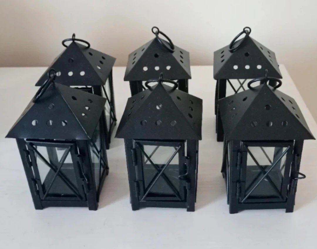 I'm selling a set of six Ashland mini tea light lanterns! They are black and come in their original box. These little lanterns are perfect for adding a cozy touch to any room or event