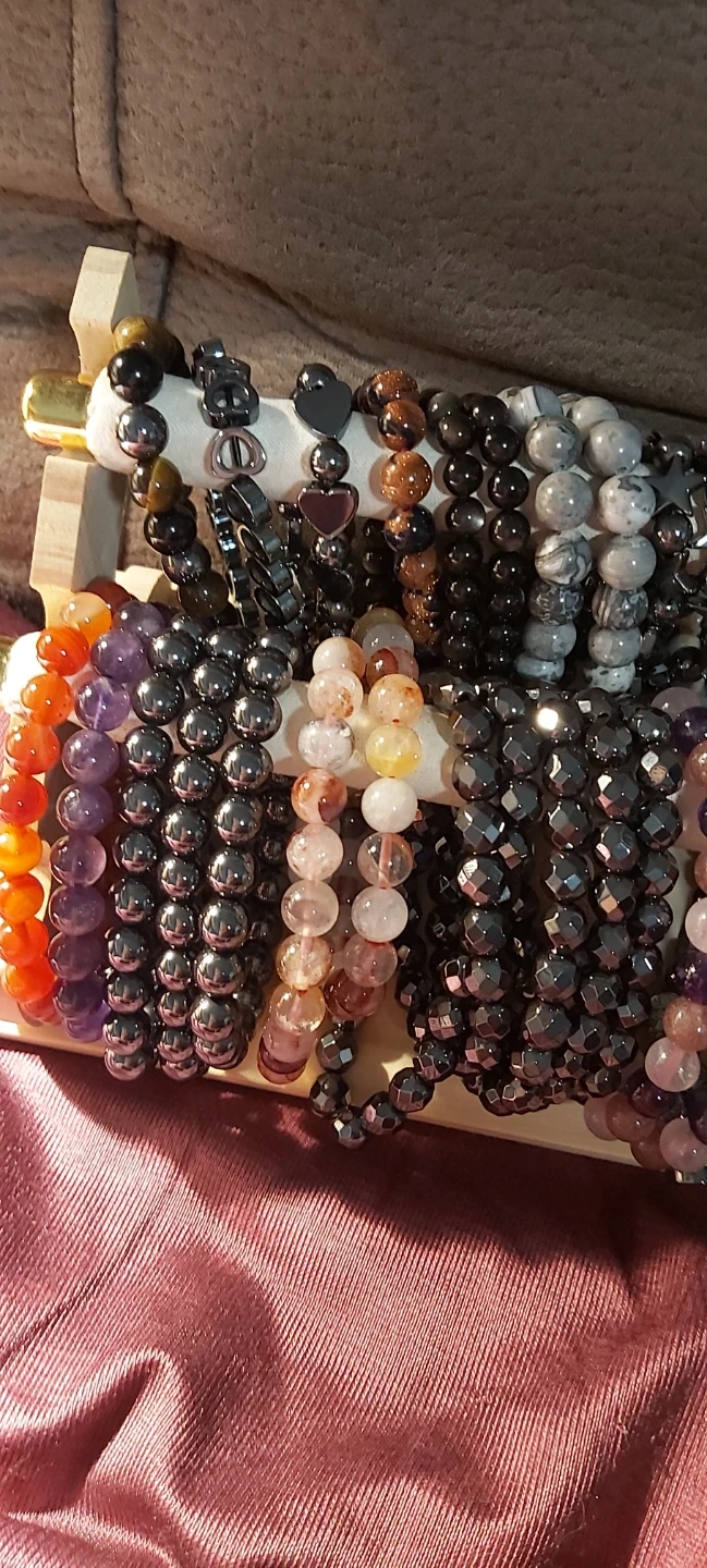 More beautiful bracelets. looking for something specific, I have more. lots of hematite too. These are all natural stone. This selection you see here are all $10 each. Many more to choose from. Pick up in Walkerville area.