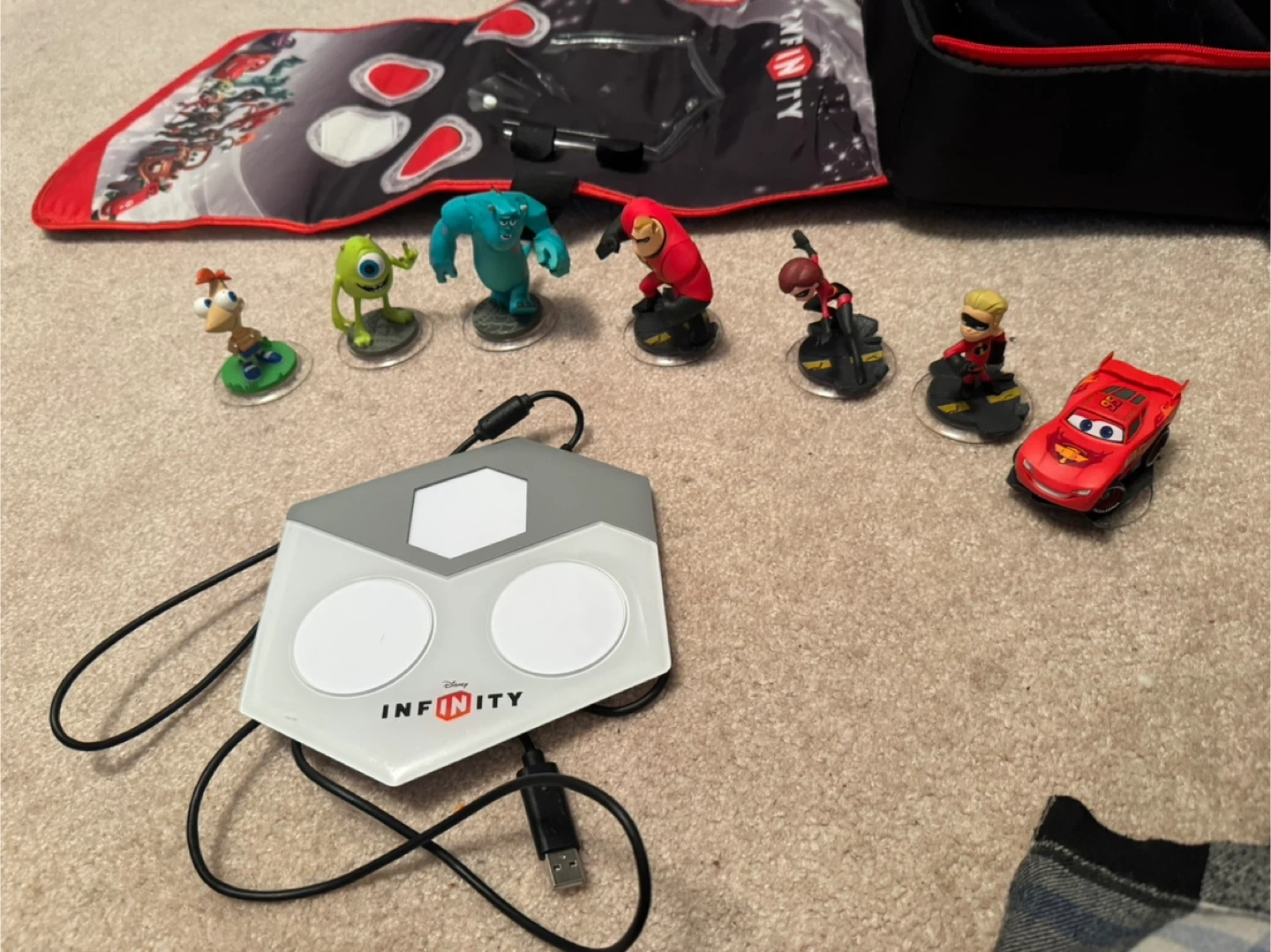 Disney Infinity Figures, Base, and Carrying Case