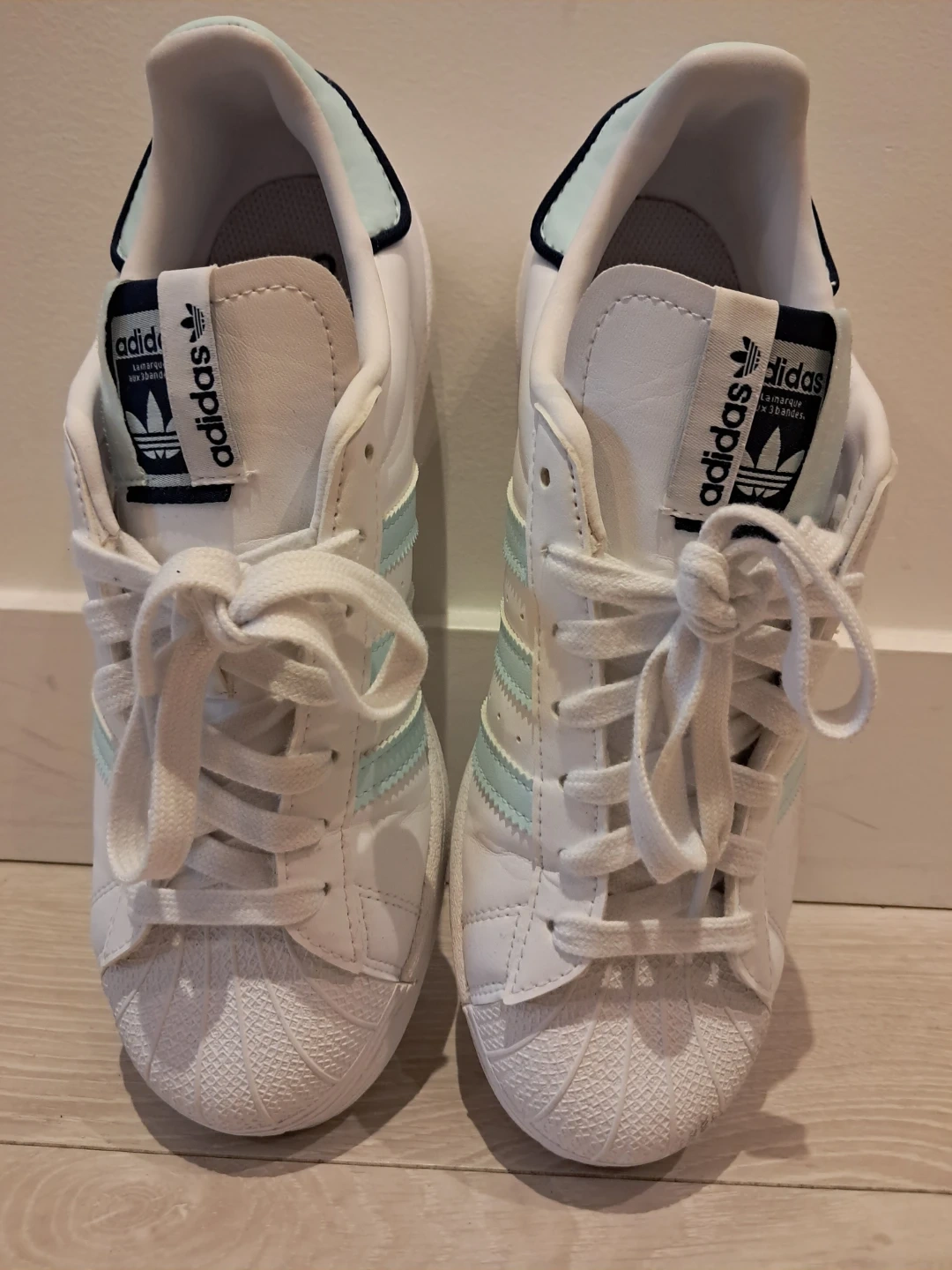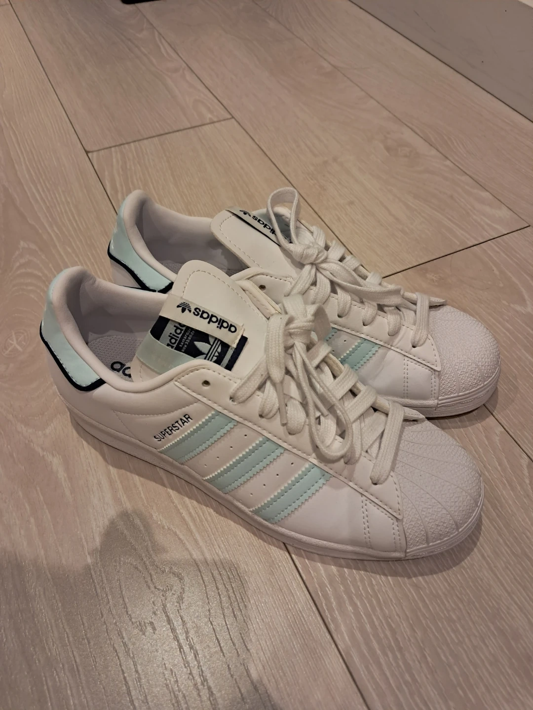 Buy & SellAdidas Superstar White/Mint ShoesAdidas Superstar White/Mint Shoes$39Selling a pair of Adidas Superstar shoes in white with mint green stripes!ConditionLike newSize39 eur, 8 USWHERE TO MEET9887 Whalley BlvdView MapSELLERVanessaWhalley150 reviews0 chats·0 favorites·39 viewsSEND CHAT TO SELLERHi Vanessa! I’m interested in your listing.Hi Vanessa! I’m interested in your listing.Get the Karrot app to chatSign In to chat
