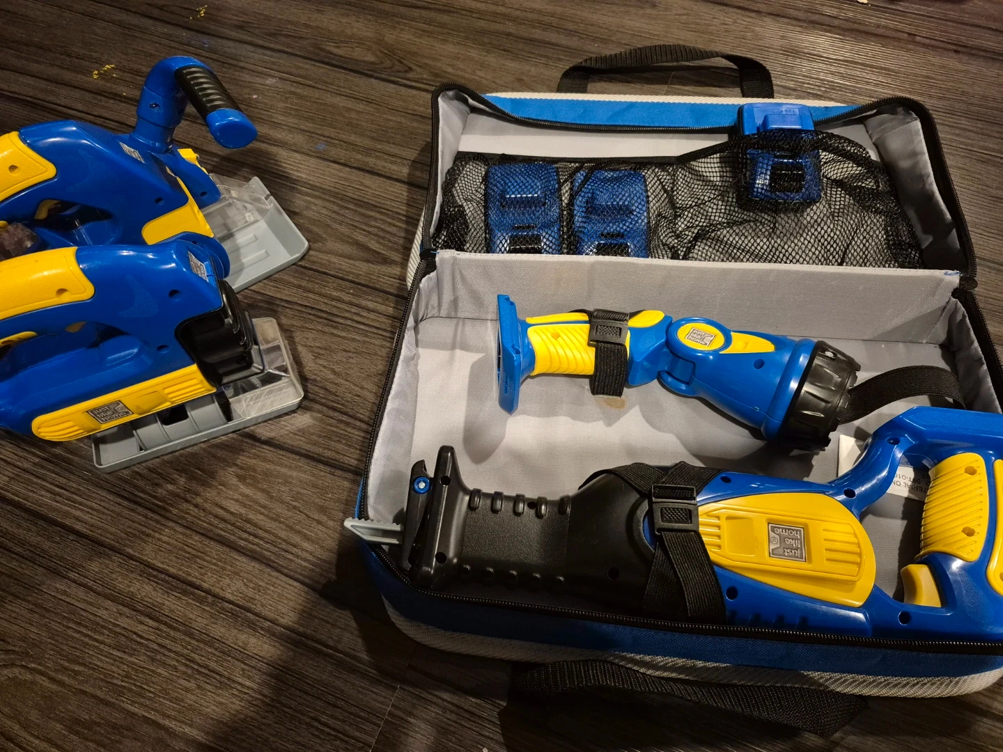Selling a Just Like Home Workshop tool set! This set comes with a variety of tools in blue and yellow, perfect for little builders. Includes a carrying case to keep everything organized. Great for imaginative play!