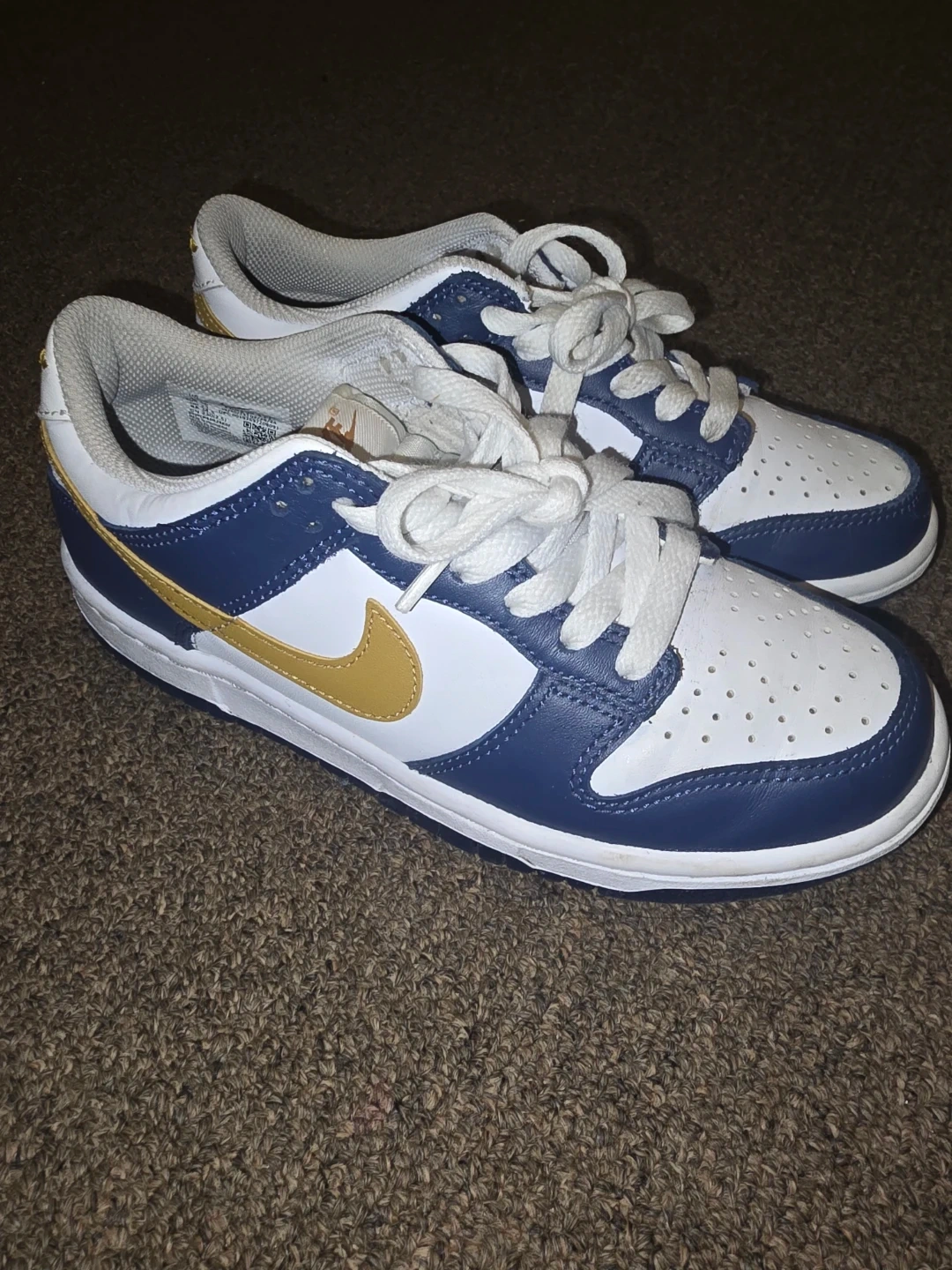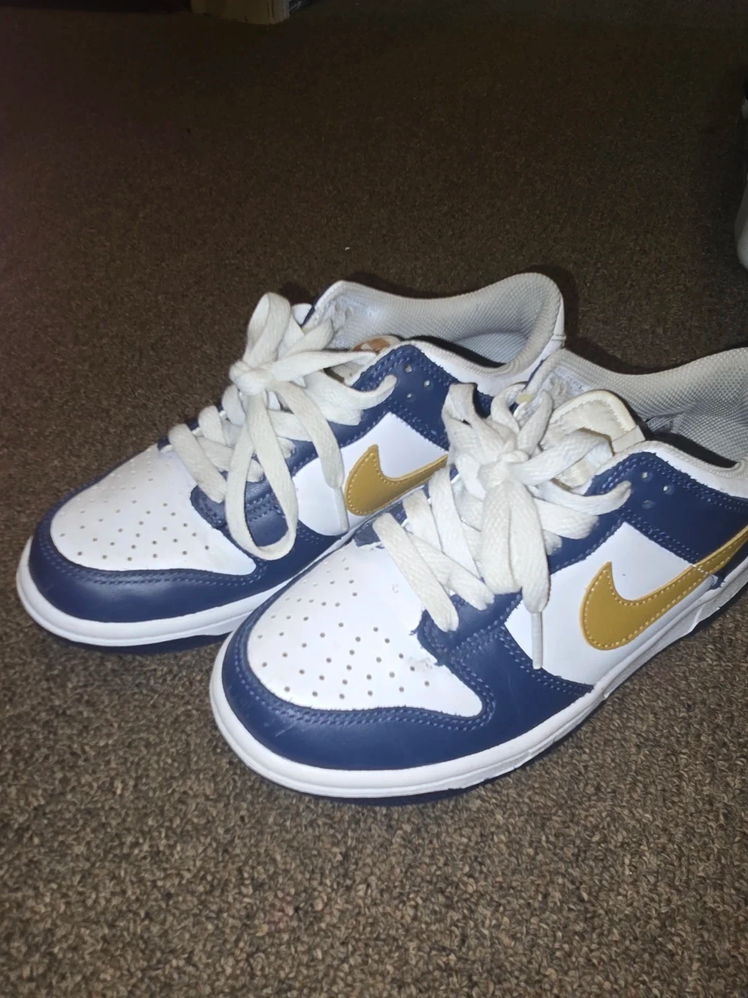 Buy & SellNike Dunk Low White/Navy/Gold SneakersNike Dunk Low White/Navy/Gold Sneakers$40Nike Dunk Low sneakers in a white, navy, and gold colourway. They're in good condition and ready for a new owner!ConditionLike newSize4YBrandNikeWHERE TO MEETmapleviewView MapSELLERverifiedSavvyLakeshore600 reviews1 chats·0 favorites·43 viewsSEND CHAT TO SELLERHi Savvy! I’m interested in your listing.Hi Savvy! I’m interested in your listing.Get the Karrot app to chatSign In to chat