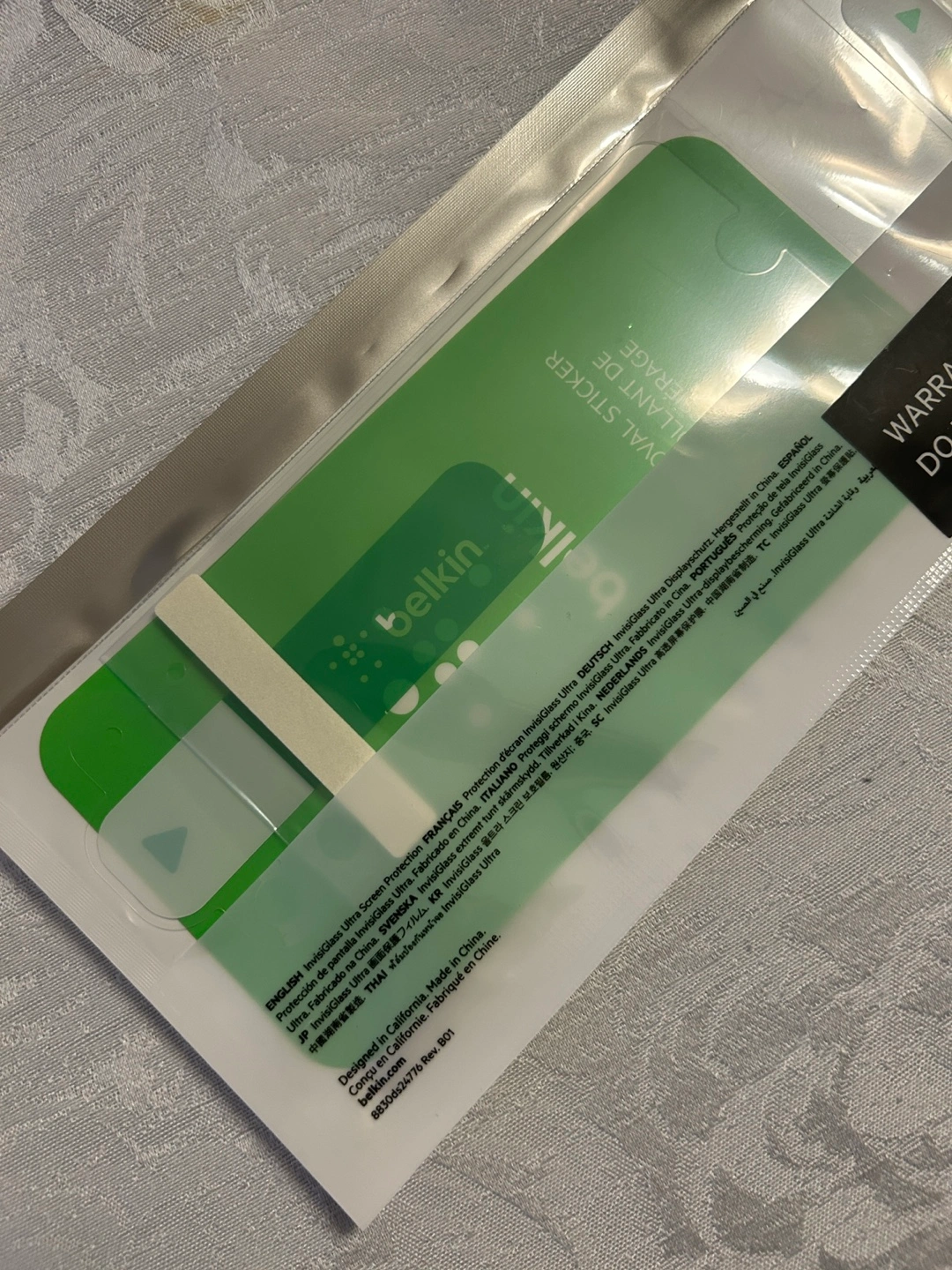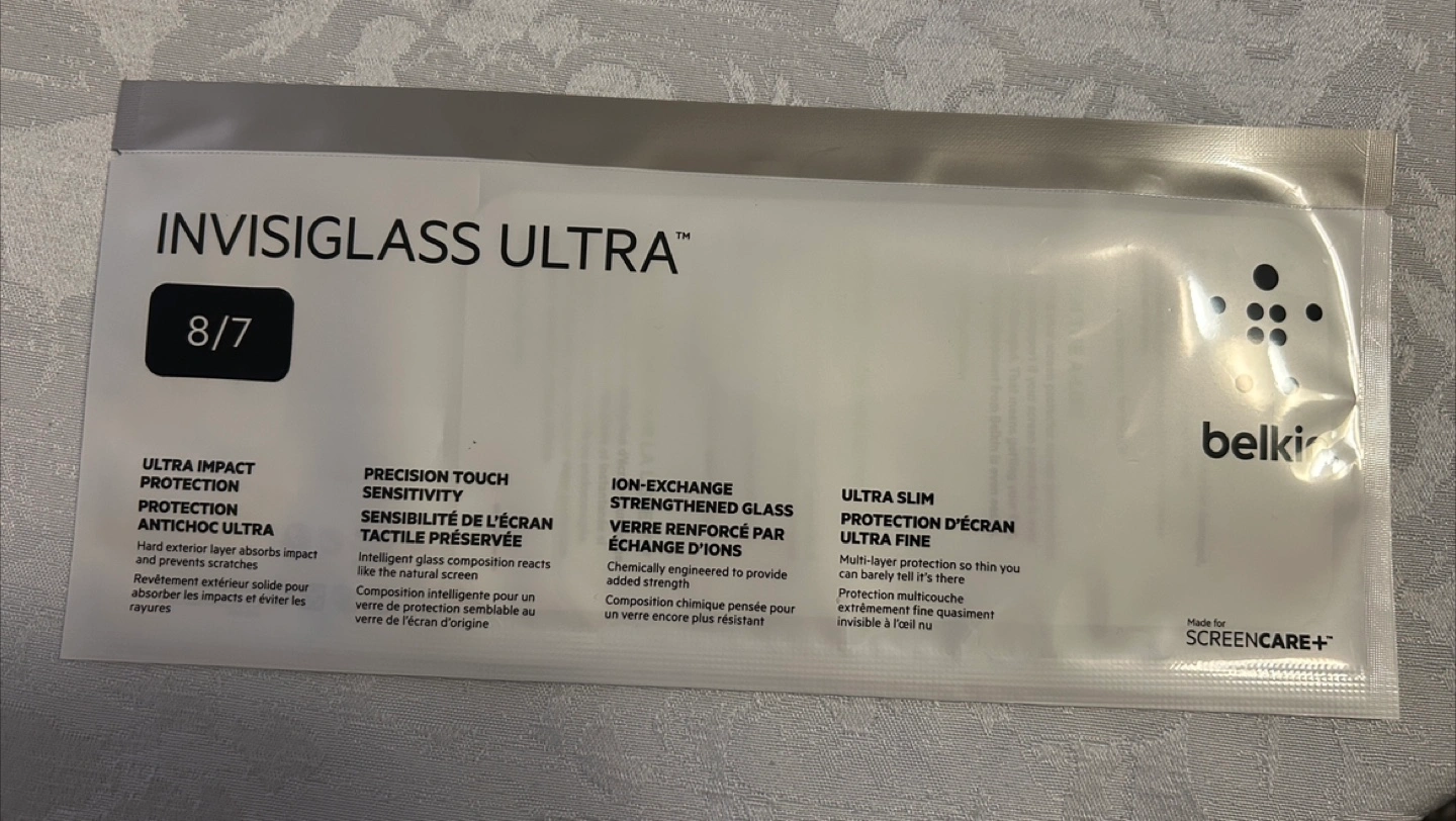 New Belkin InvisiGlass Ultra screen protector. Ultra-thin, ultra-strong, and provides impact protection. Maintains screen sensitivity.