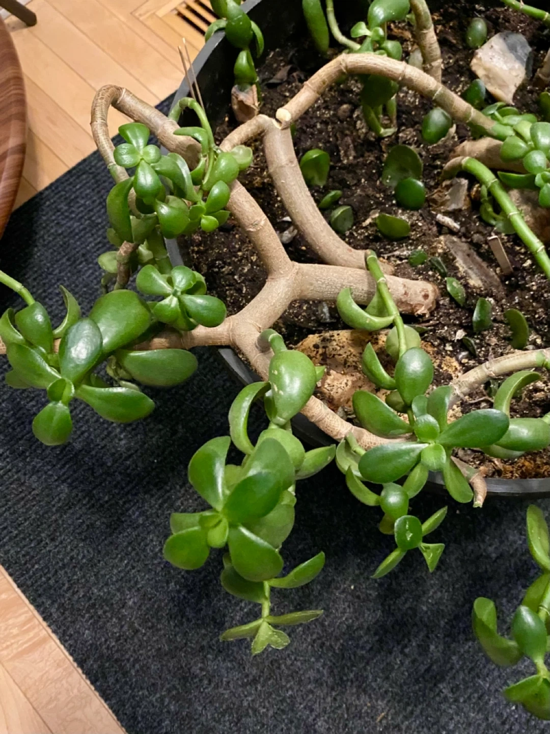 Potted jade plant ready for a new home! It's a healthy plant in a black pot. Perfect for adding a touch of greenery to your space. It’s 20 plus years plants.