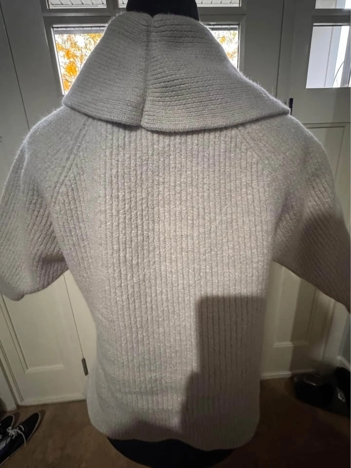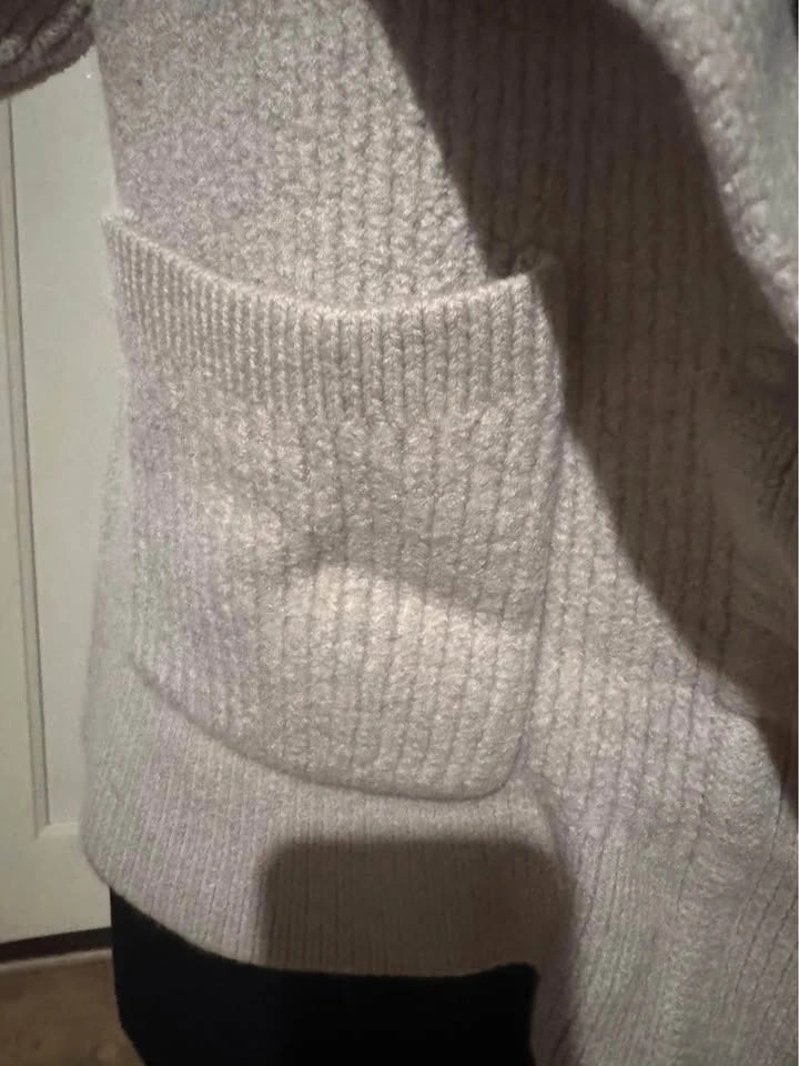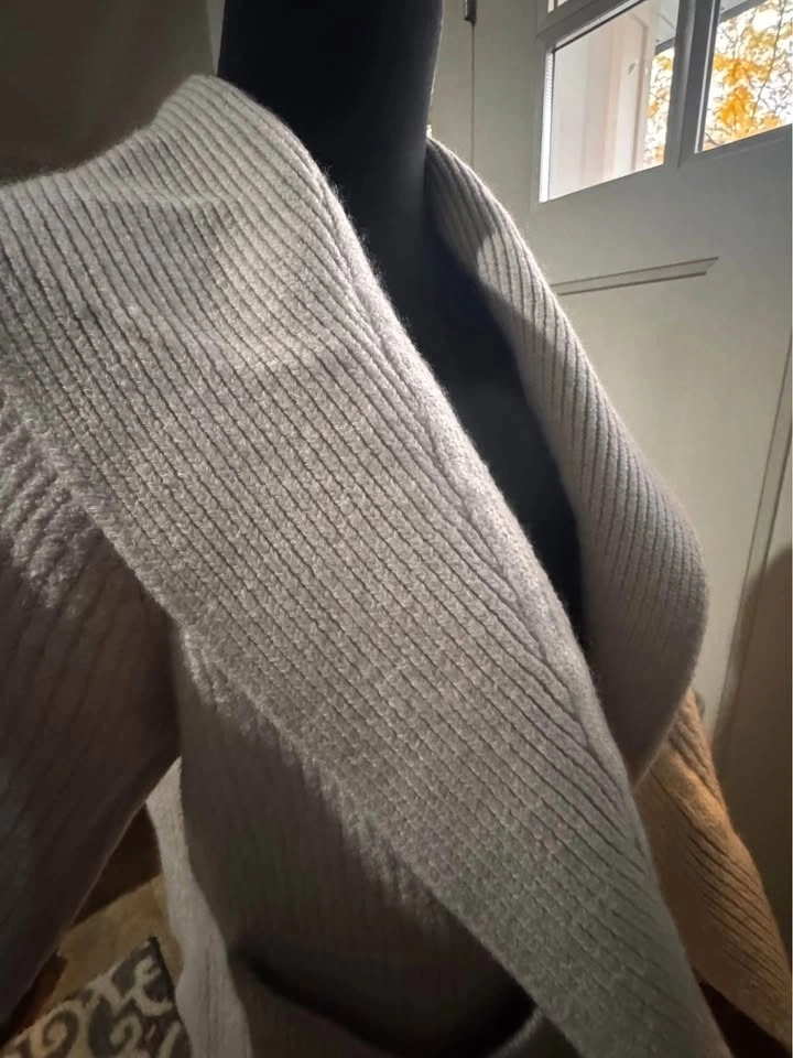 Beautiful oatmeal-colored Wilfred Free cardigan from Aritzia.