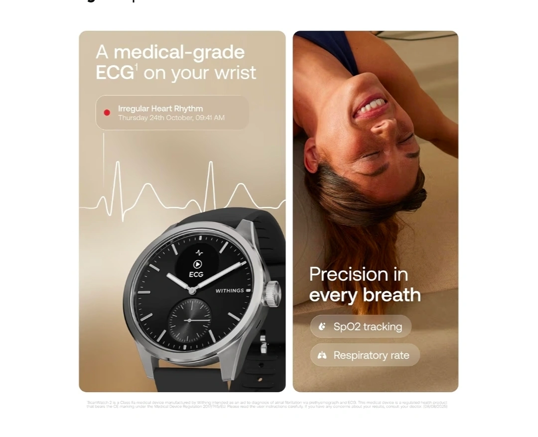 Selling a Withings ScanWatch 2! This watch offers medical-grade ECG on your wrist, irregular heart rhythm detection, and precision in every breath with SpO2 tracking and respiratory rate monitoring. It also tracks activity, including sport and sleep quality. Stay on top of your health with this stylish and functional watch!