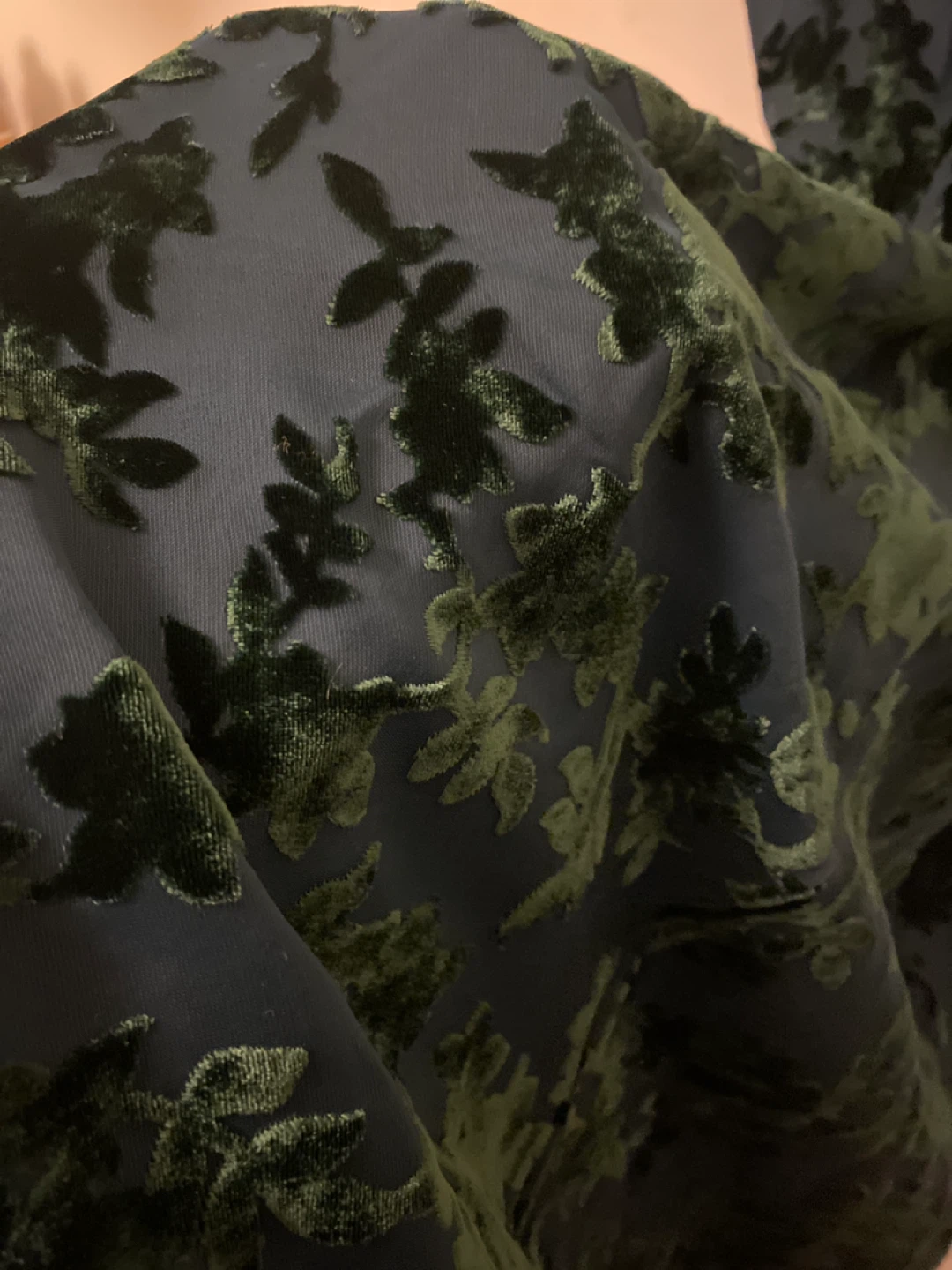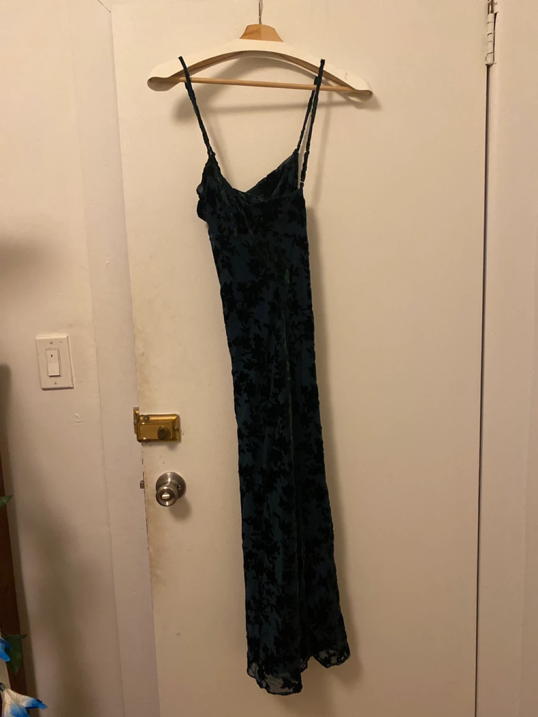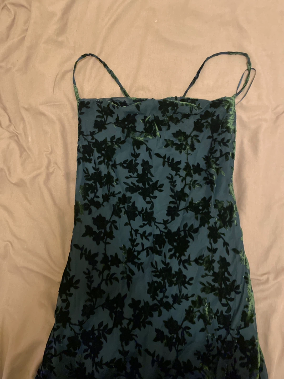 Beautiful floral velvet dress! It's in great condition and ready for a new owner. The dress features a lovely floral pattern in a deep green velvet material.