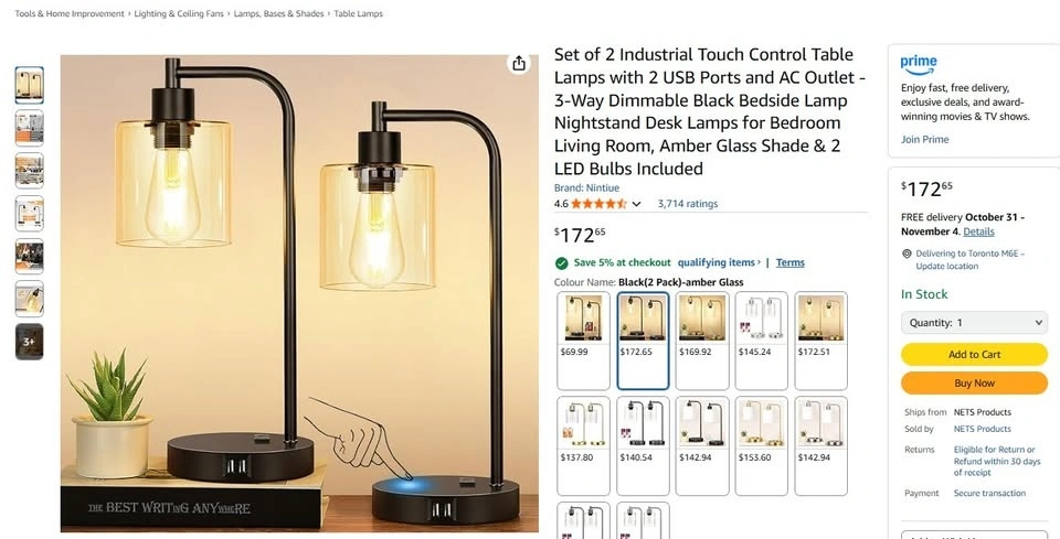 Set of 2 Industrial Touch Lamps w/ USB - 3-Way Dimmable