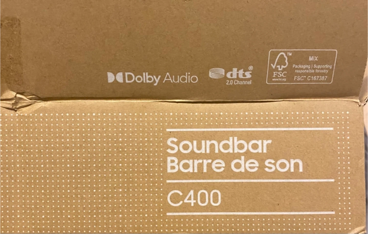 Selling a like new Samsung Soundbar C400, still sealed in its original box! It's been used for a little under a year and comes with all the original packaging and components. Enjoy Dolby Audio and DTS 2.0 Channel for great sound quality.