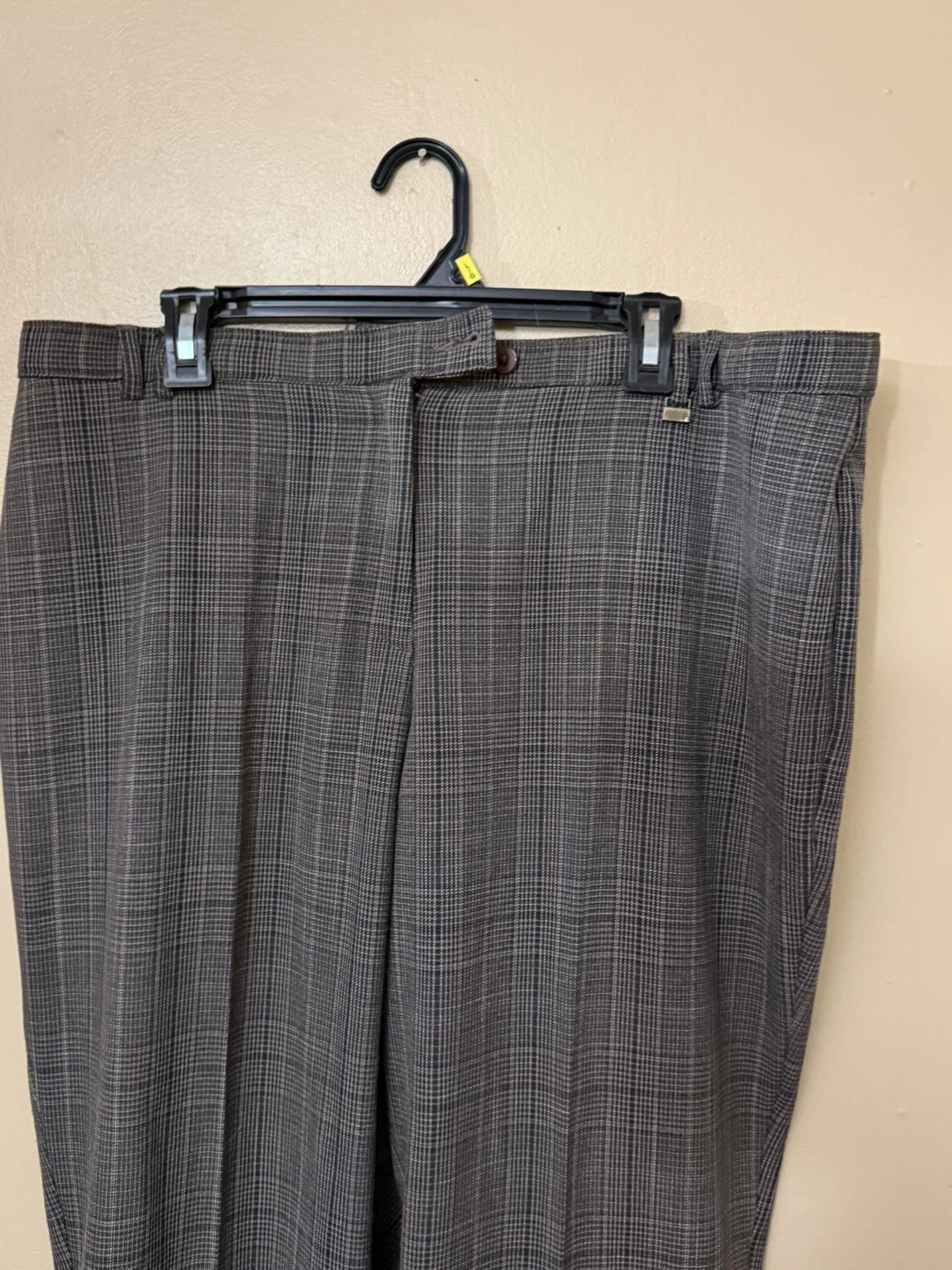 These women's dress pants in a plaid pattern, size 16, perfect for a professional or formal setting. The pants are in good used condition, having been worn but well-maintained. They feature a classic cut and comfortable fit, making them a versatile addition to your wardrobe.