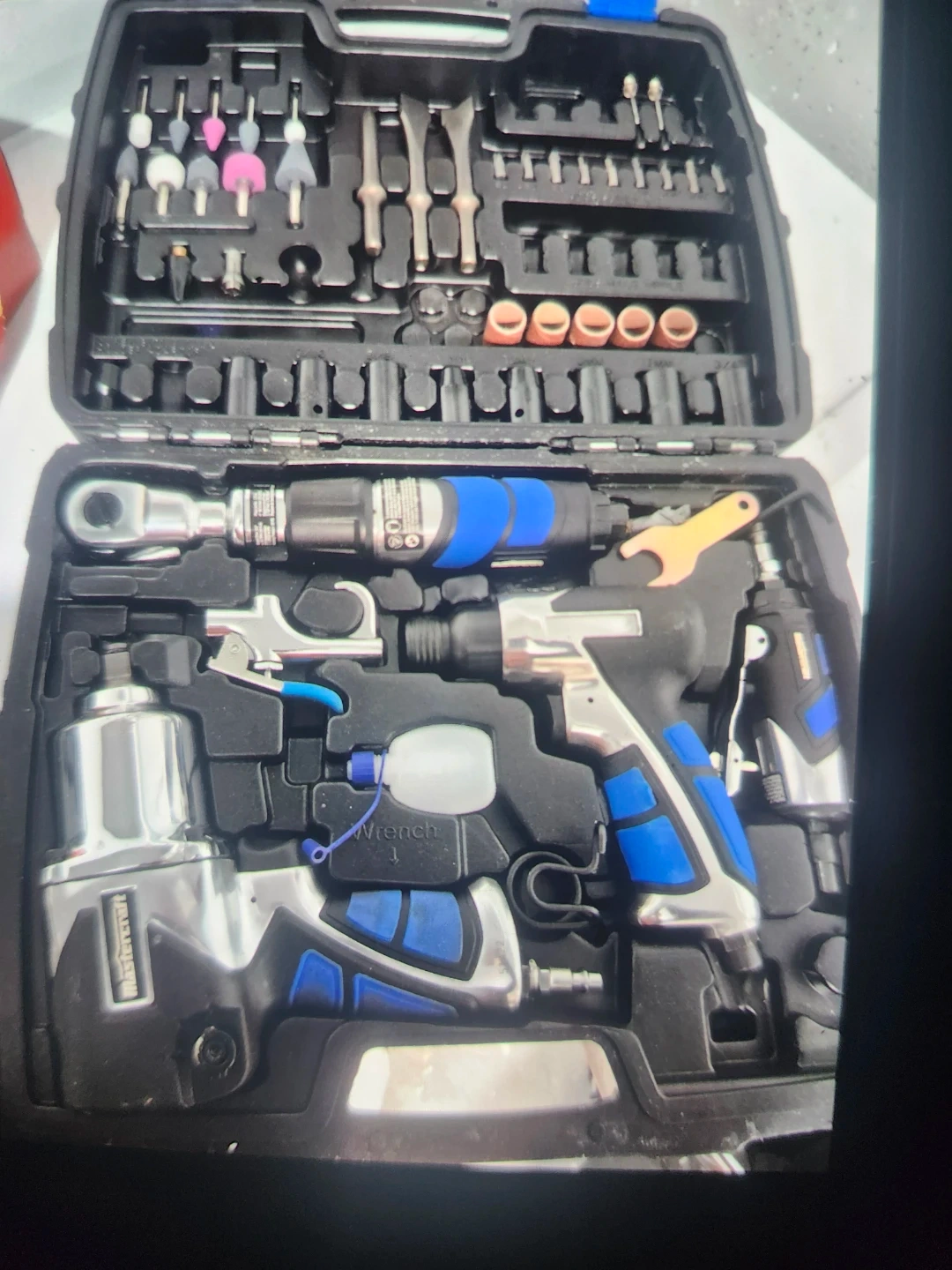 Selling a Mastercraft air tool kit. It includes a variety of air tools and accessories, all neatly organized in a carrying case. Great for automotive work or general repairs!