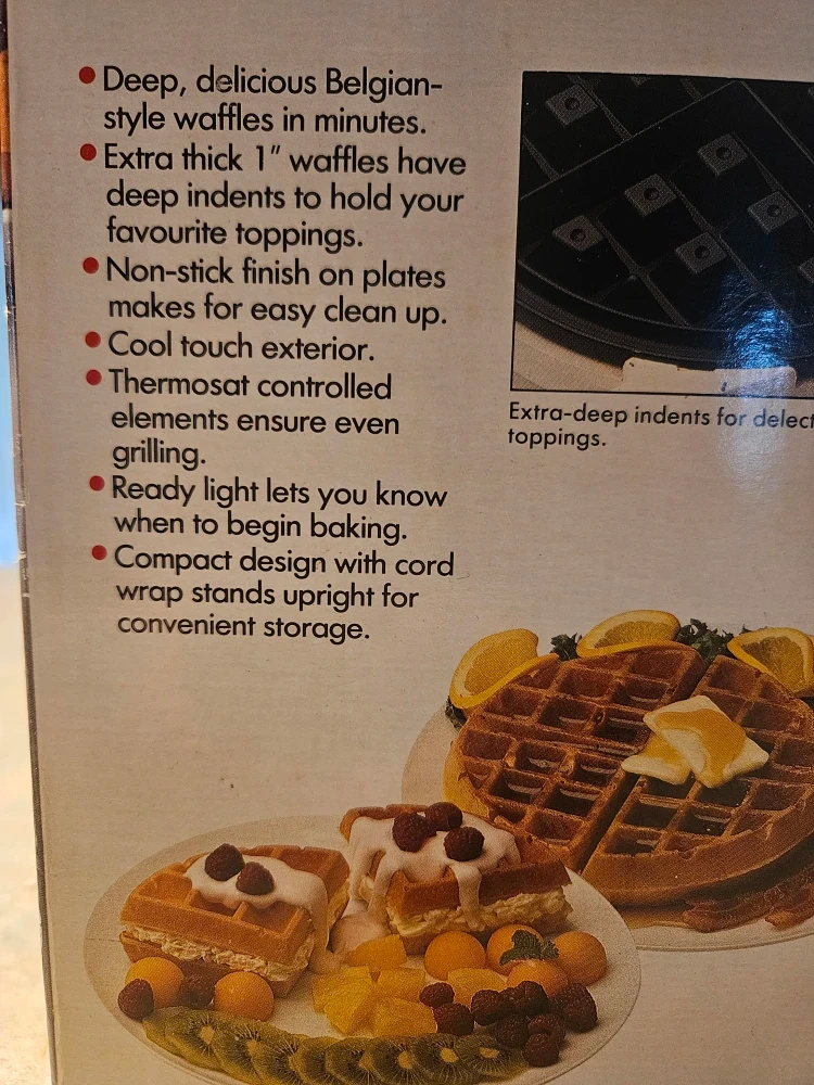 Selling a Philips Belgian waffle maker, model KB5500! It makes deep, delicious Belgian-style waffles in minutes. The extra deep indents are perfect for holding your favourite toppings. It also has a non-stick finish on plates for easy clean up and a cool touch exterior. The compact design with cord wrap stands upright for convenient storage. Like new!!!