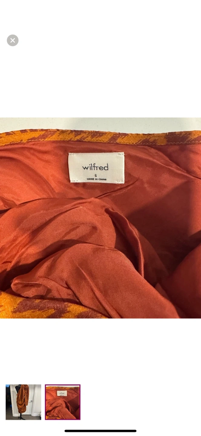 Buy & SellWilfred Dress - Size SWilfred Dress - Size S$42Selling a Wilfred dress in size small. The dress is a beautiful orange and brown colour. It's in great condition and ready for a new wardrobe!ConditionLike newSizeSBrandWilfredWHERE TO MEETCheck LocationView MapSELLERverifiedMarinelaVictoria Village20816 reviews0 chats·0 favorites·4 viewsSEND CHAT TO SELLERHi Marinela! I’m interested in your listing.Hi Marinela! I’m interested in your listing.Get the Karrot app to chatSign In to chat