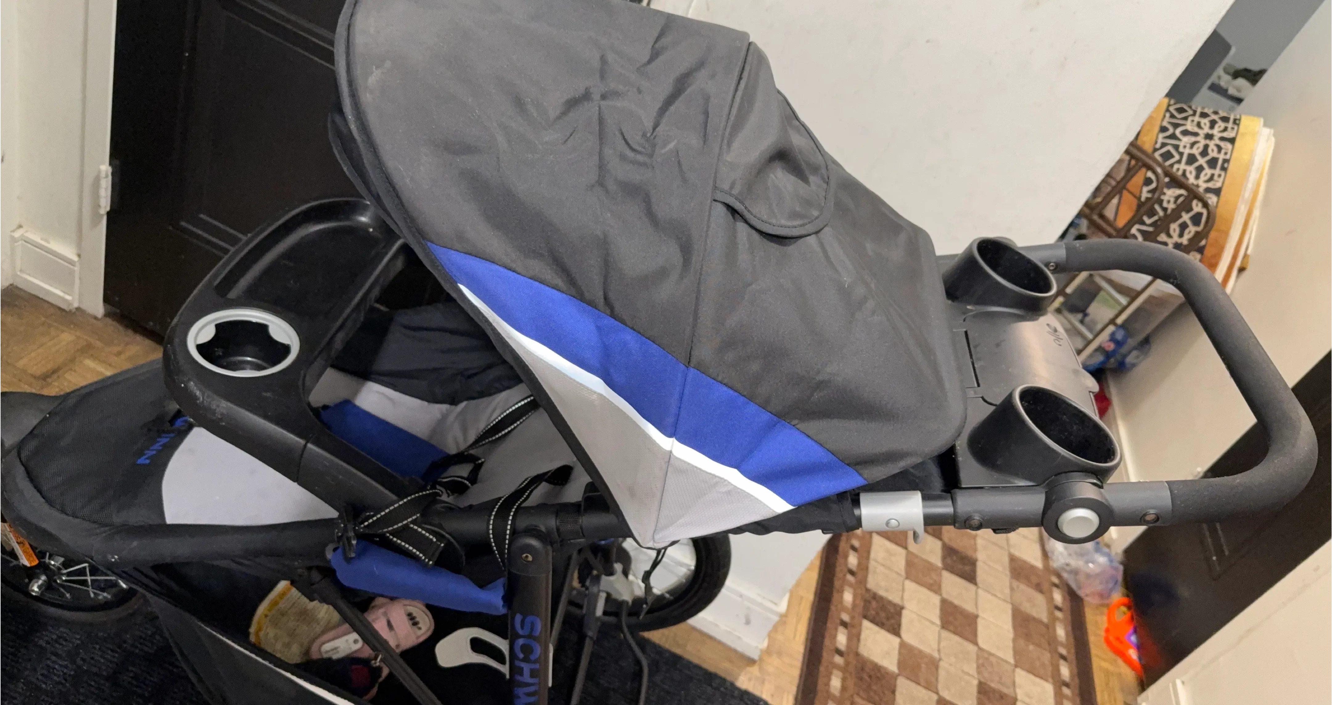 Selling a Schwinn jogging stroller. It's in great condition and ready for your little one's adventures! It features a convenient parent tray with cup holders and a child tray to keep essentials within reach during your strolls