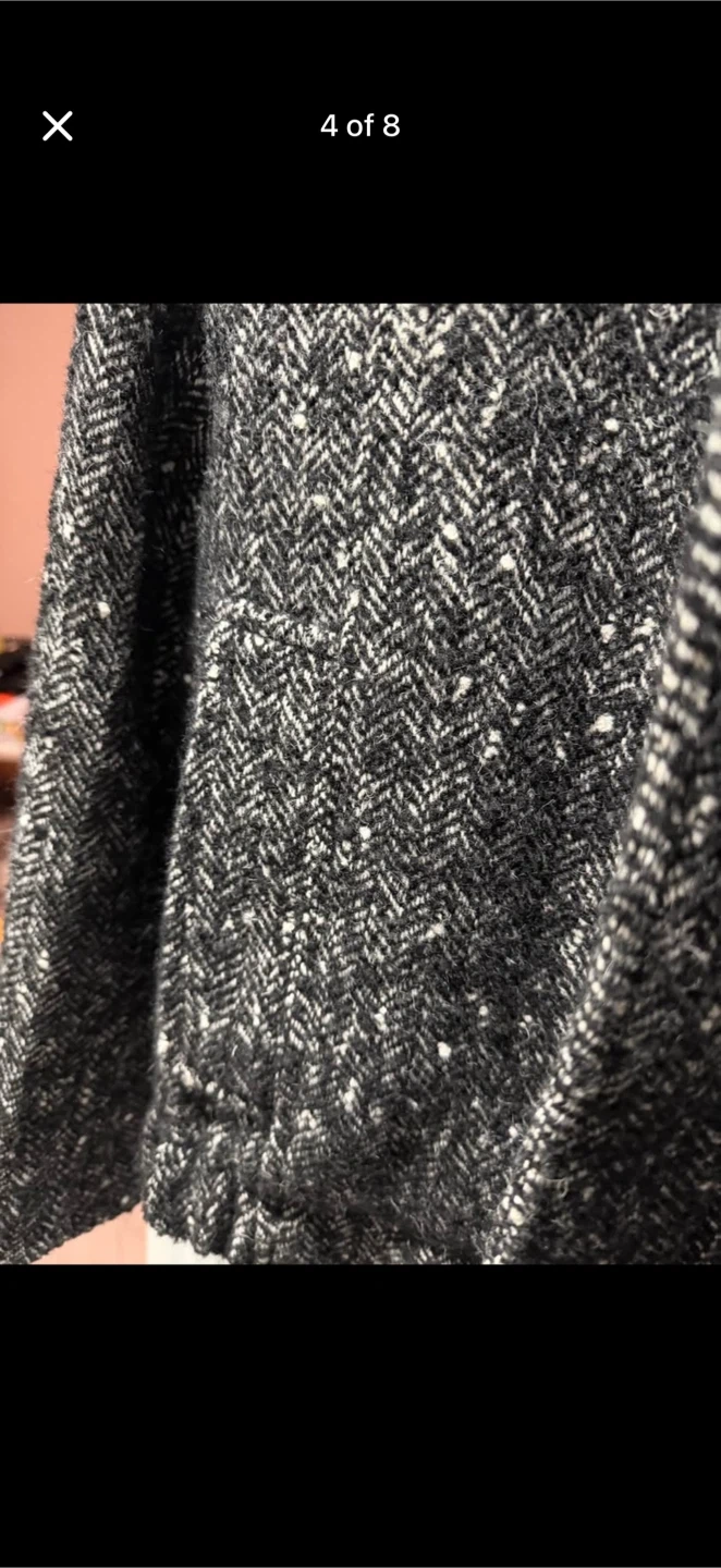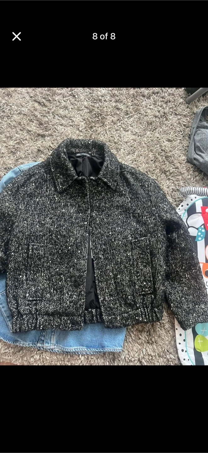 Selling a stylish Zara jacket with a unique herringbone pattern! It's a size medium and in great condition. Perfect for adding a touch of sophistication to your wardrobe